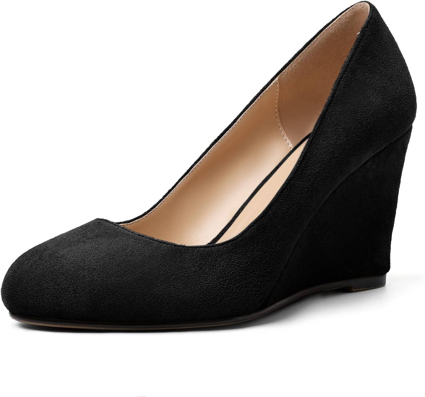 AUMOTED Women's Wedges Heel Pumps Solid Solid Closed Round Toe Wedge Pumps Slip On 3.5 Inch Wedge Suede Heels for Dress Working Evening