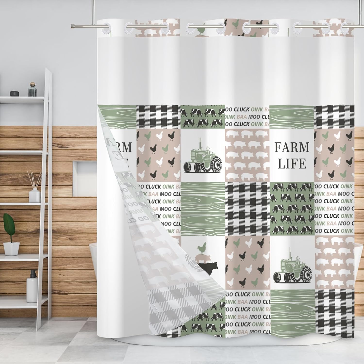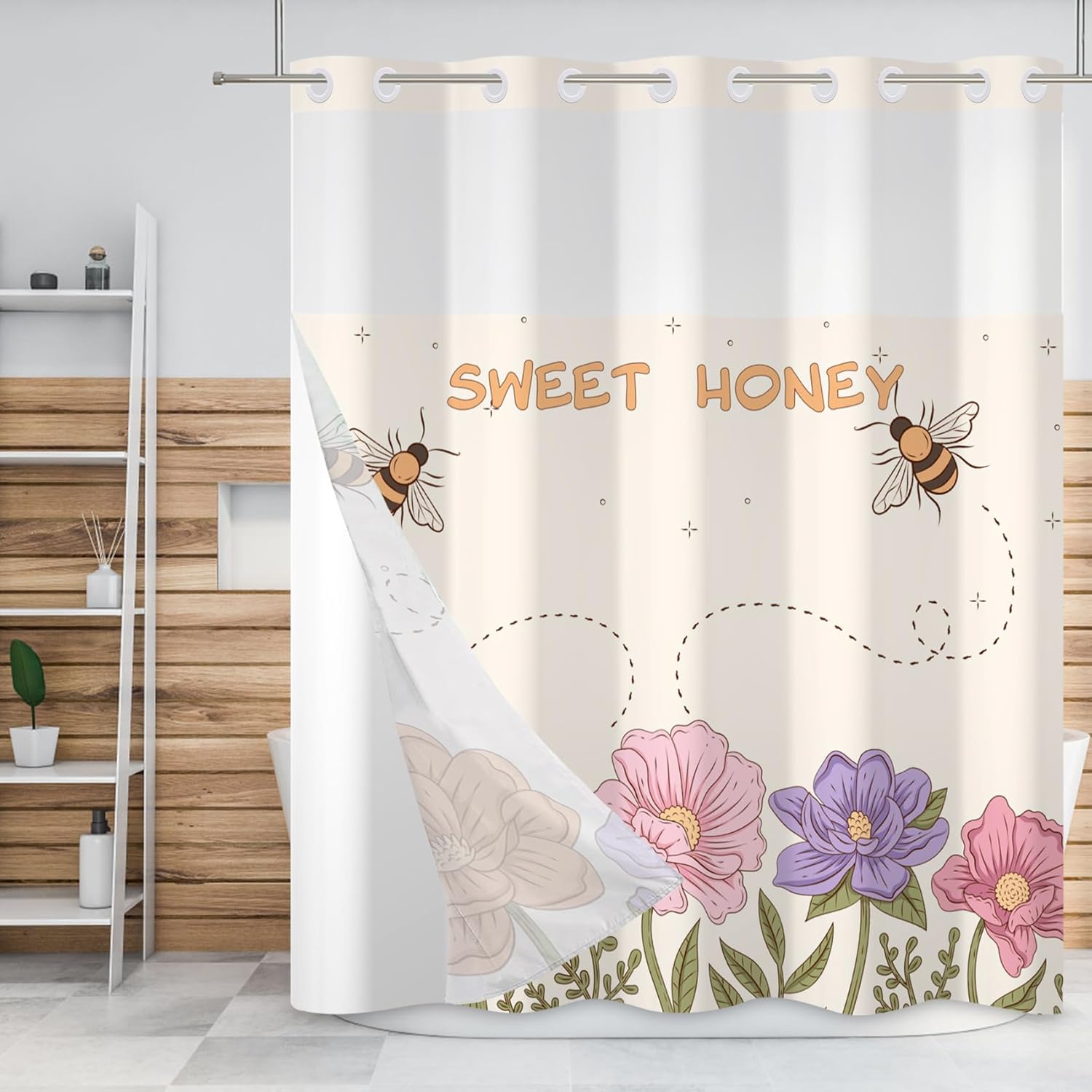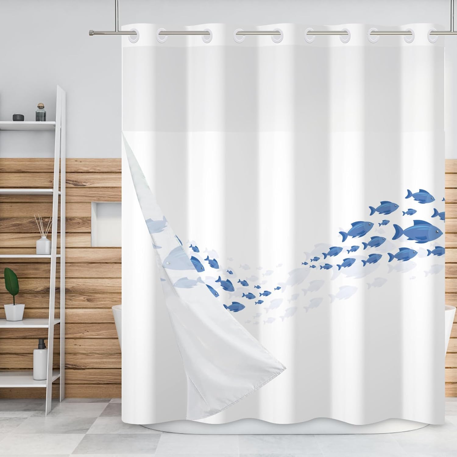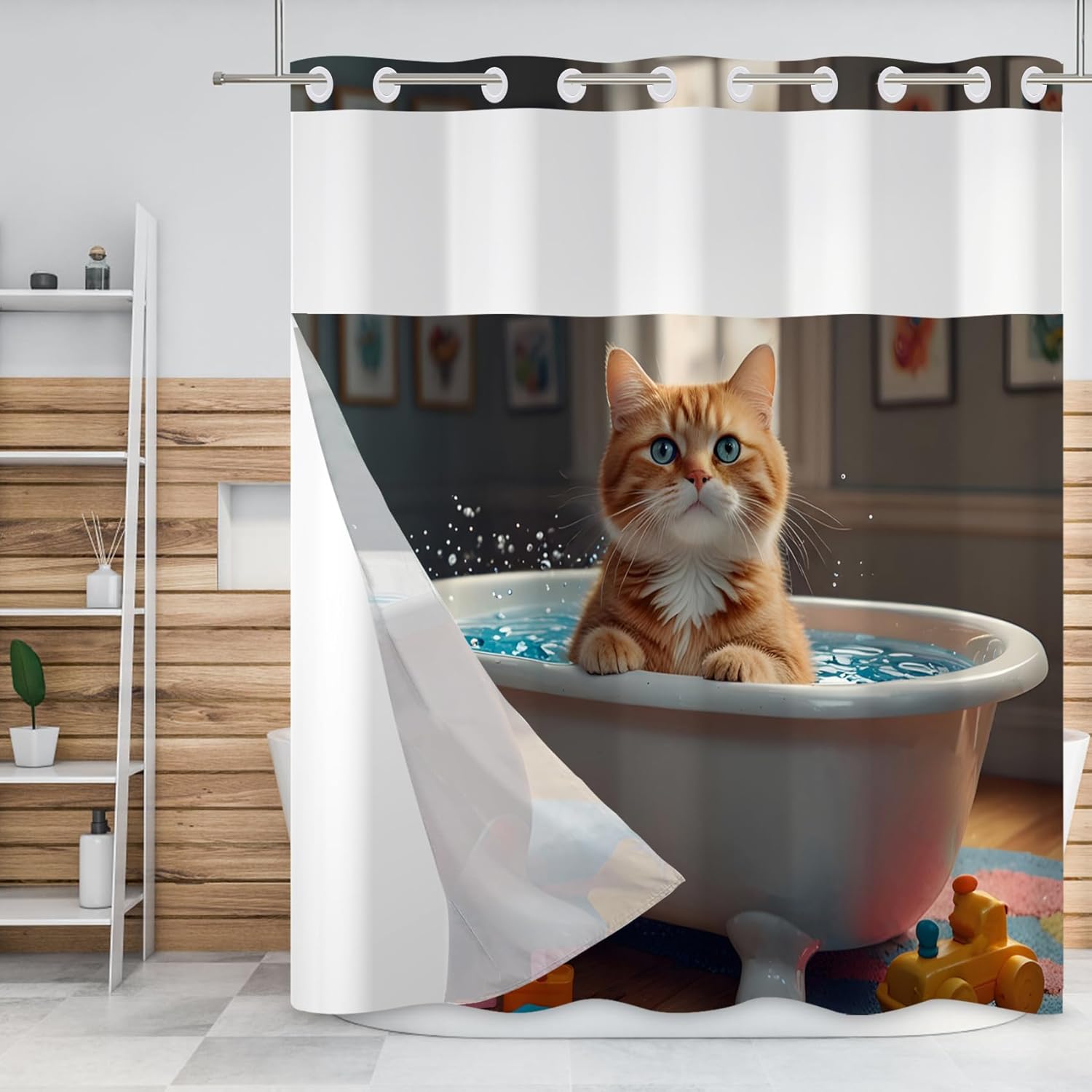 Baocicco no hook shower curtain can bring many styles of themes to your bathroom, make your bathroom fresh and tidy, and bring a new look to your life. Not only can you dress up a family bathroom, but it can also be used for the appearance of a power room, toilet, master bathroom, children's bathroom, guest room or hotel bathroom. Don't worry about hanging, the split-loop design allows you to hang it without removing the shower curtain rod. Size: ▶71W x83H inch Material: ▶Polyester waterproof fabric Package Type: ▶1 x shower curtain and 1 x fabric snap liner Scenarios of use: ▶Family, dormitory, camping, hotel, hotel bathroom, shower room, compartment, bathtub, living room, etc.; can also be used with shower curtain lining. Maintenance: ▶Snap-on fabric liner is easy to disassemble for easy cleaning or replacement ▶Machine wash with cold water, low drum drying Notes: ▶Manual measurement of size, there may be an error of 1-3mm. ▶There may be slight creases before first use, and it will recover after hanging vertically for 2-3 days. ▶Use a steam iron to iron the back at low temperature, and put a layer of dry cloth on it when ironing, which can also eliminate creases. ▶Please understand that it is normal to have slightly different colors due to different monitors and lights.
