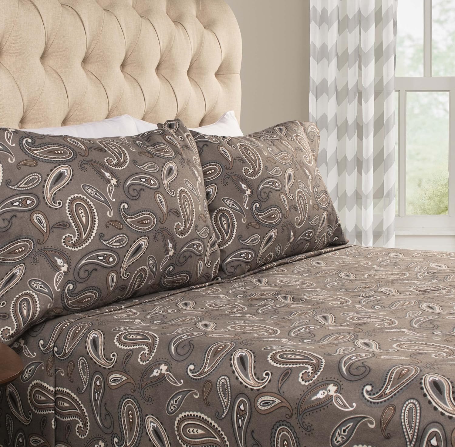 Dip into a pool of calm with the Farrador Flannel Vintage Paisley Sheet Set. This sheet set is made from 100 percent flannel cotton for the ultimate in softness and luxurious comfort.The premium flannel cotton fibers are breathable, plush, and more durable than other varieties of cotton. Tie your bedroom decor together with the beautiful vintage style of this cheerful sheet set.
