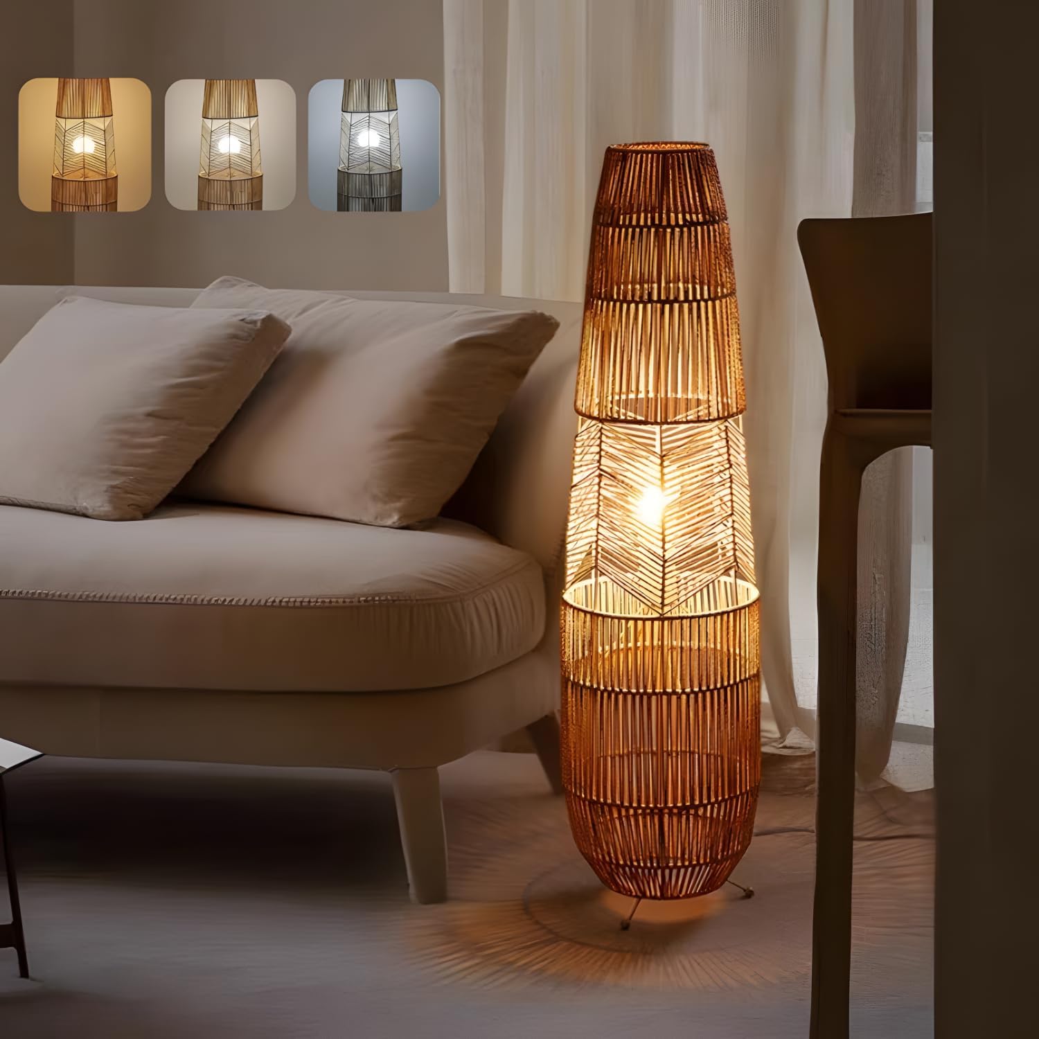 Product Description Color:Beige Wattage: 30W Voltage: 110V Materials:Rattan Type:Floor Lamp Product Dimensions Fixture Weight:8.8lb(4 kg) Shade Diameter:9.84"(25cm) Fixture Height:36.22"(92cm) Bulb Information Number Of Bulbs :1 Bulb Base:E26 Consumer Service The warranty period of the product is 24 months.If you are not satisfied with your purchase, please feel free to contact us. We offer you an excellent after-sale service. As your satisfaction is our priority, we are committed to making it right for you.