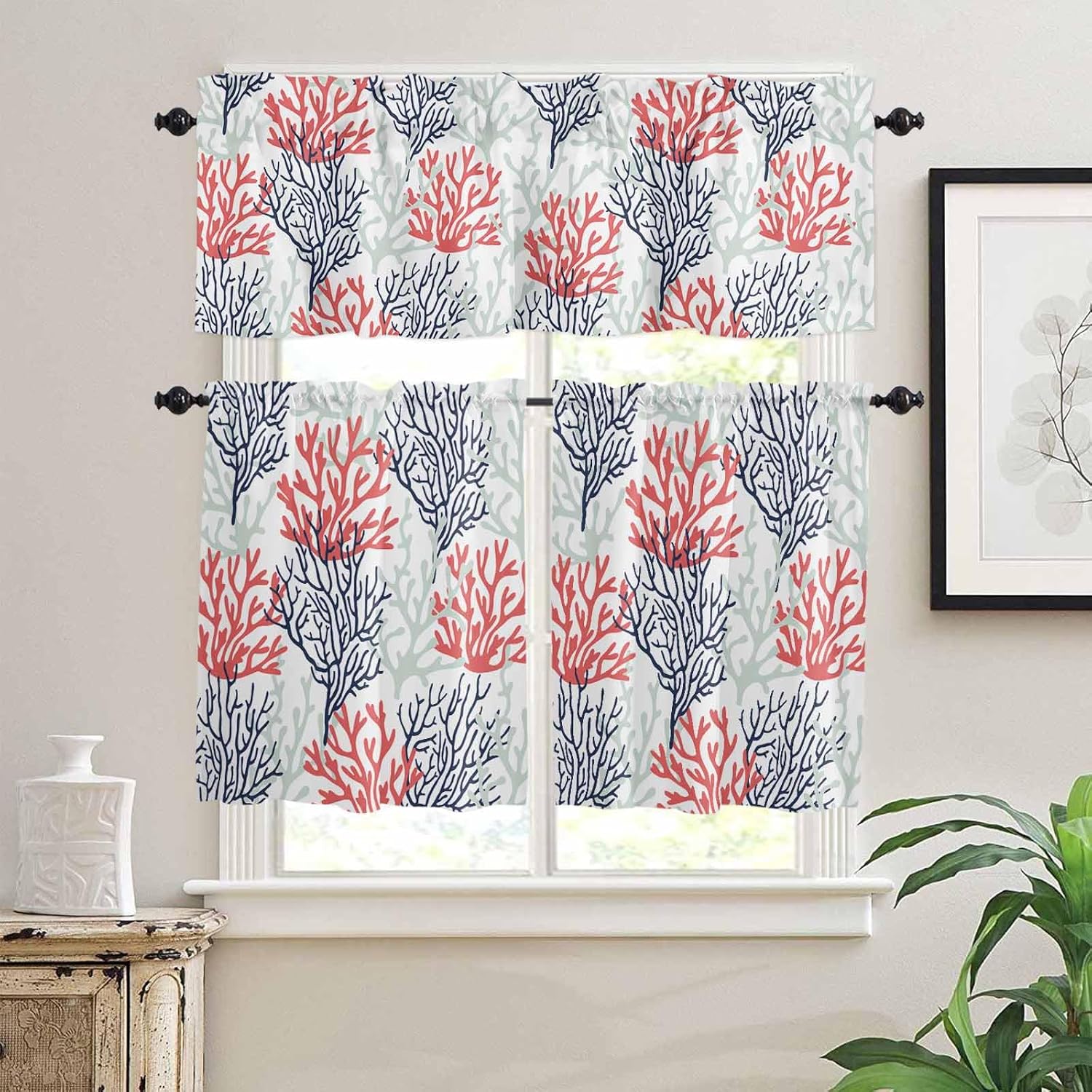 ❀Rod Pocket Window Curtain Valance and Tier Set of 3Superb WorkmanshipOur curtain valances are made by the upgraded production technology and exceptional sewing technology, and the fine stitches workmanship applied to our small window curtains set, firm and neat, ensures it more durable. The professional production condition also make our tier curtains soft-to-touch and long lasting after each washing.3" Standard Rod Pocket & 1" Elegant Header TypeConstructed with 3" rod pocket top, our light filtering panels are effortless for installment and fitting up to 1.5" curtain rods in a few minutes. What's more, there is 1" header on the top of our kitchen short curtains, which can create an elegant wavy pleat, give a vitalitive touch and add beauty to your dull windows with a new look, bring a finishing touch to your home.Small Window Curtains of Multiple FunctionsFilter & Soften Light:The short half window curtain panels are lightweight and breathable, giving just the right balance of privacy and sunlight, which can filter some glare and soften the sunlight, allowing the right amount of natural sunshine and air flowing into your room and bringing you a private and breathable indoor experience.Perfect Home Decor:Our three-pieces tier curtain set, available for different patterns and sizes, is a perfect addition for your room and windows, which looks great in bedroom, living room, dining room, kids' room, nursery, kitchen sink, laundry, basement, office and any small windows, also great for wedding, birthday party, holiday and other special occasions on Thanksgiving Day, Valentine's Day, Easter Day, Christmas Day, St. Patrick's Day. Our tier curtain panel with valance can brighten up your room while protecting privacy at any time and creating a comfortable and private setting for your family.Please feel free to contact us for any questions.Enjoy your shopping!
