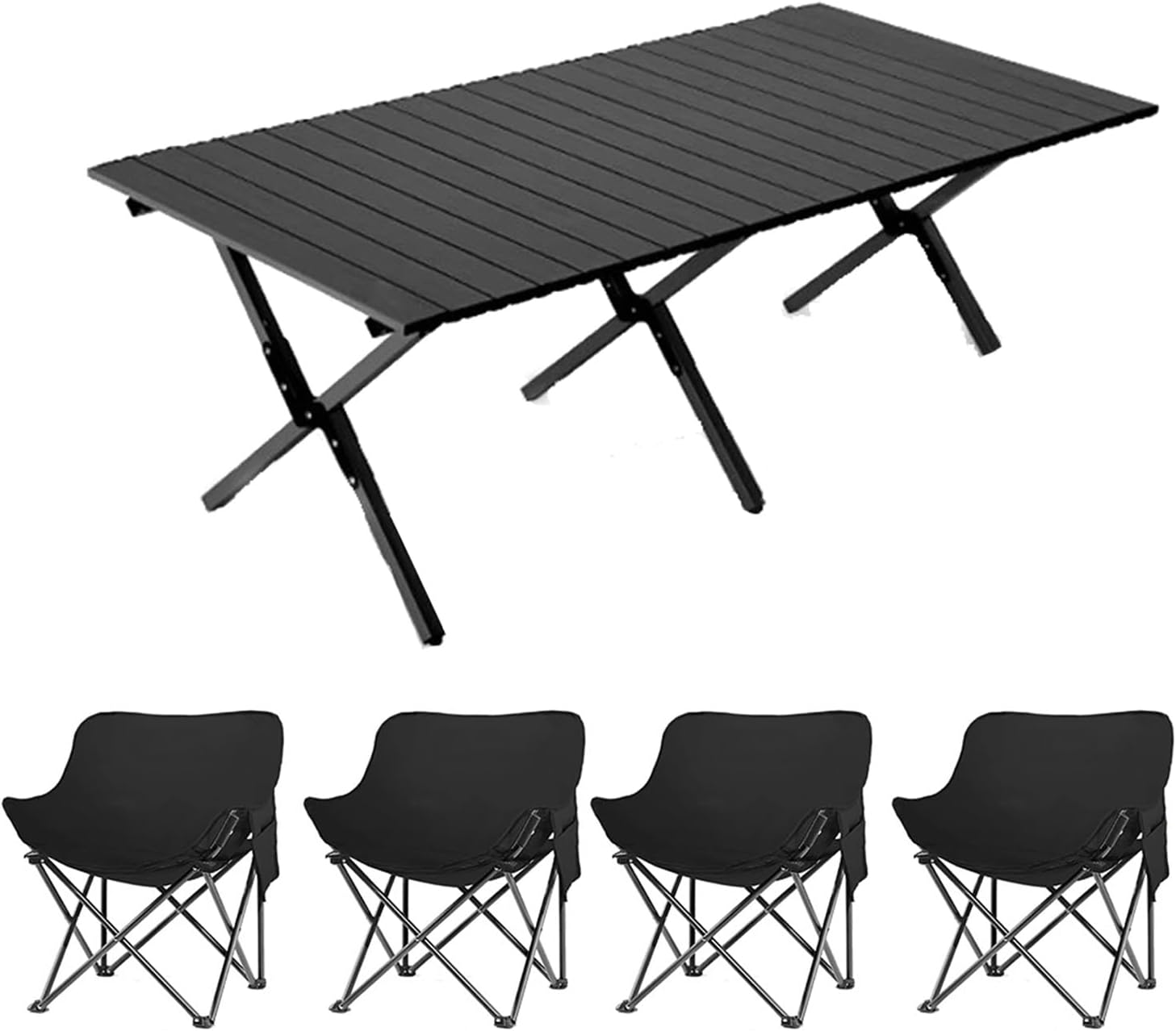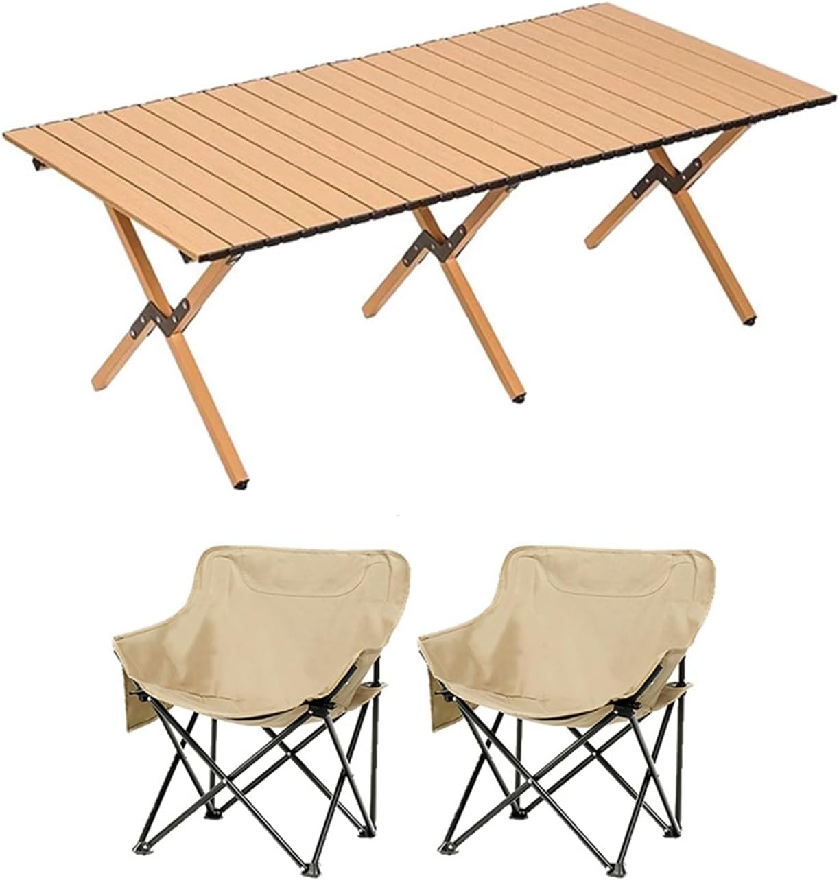 Welcome to my shop~This foldable camping table features a double-layer carbon steel top with a natural wood grain finish, making it beautiful, scratch-resistant, heat-resistant, and easy to clean. Its triangular structure and thickened legs ensure a load capacity of up to 150kg, ensuring stability and reliability for outdoor use.The spacious tabletop accommodates snacks and drinks, perfect for seating multiple people. Its foldable design allows for easy storage and can be carried away in one bag, making it suitable for a variety of outdoor activities, including camping and fishing. It's practical and convenient.- Name: Outdoor Folding Table and Chair Set- Color: Black, Natural Wood- Material: Carbon Steel, Oxford Cloth- Table Dimensions: 60*60*42cm/23.6*23.6*16.5cm, 90*60*42cm/35.4*23.6*16.5in, 120*60*42cm/47.2*23.6*16.5cm, 150*60*42cm/59*23.6*16.5in- Chair Dimensions: 45*45*71cm/17.7*17.7*28in- Suitable for various outdoor occasions: camping, picnics, family outings, garden parties, RV vacations, hiking, fishing, barbecues, travel, and parks- Includes: Folding camp chairs, folding table, and carrying/storage bagSafety warning: When used outdoors, chairs must not exceed a weight of 100 kg and tables must not exceed a weight of 75 kg. Please ensure that the table is properly installed and secured.