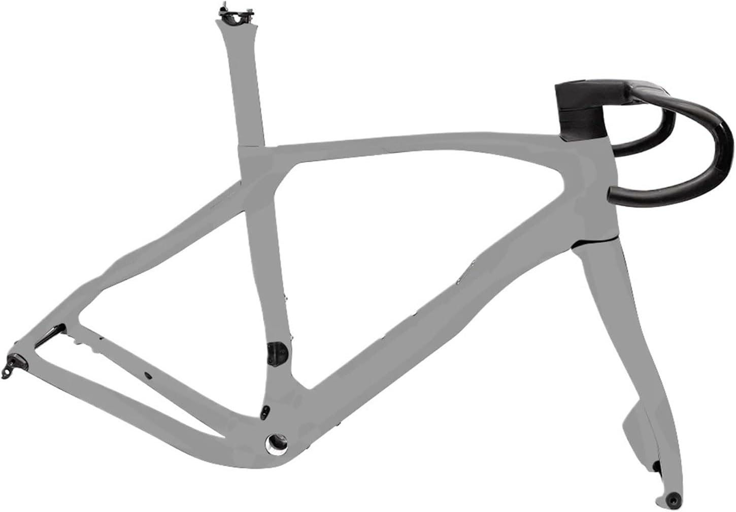 1. Frame Details : Gravel Bike Frame2. Frame Type : Cyclocross Bike Frame4. Bottom Bracket : BSA5. Finish : Matte or Glossy6. Thru Axle Size : Front 100*12mm , Rear 142*12mm7. Cable Routing : Internal Cable Routing8. Weight : Frame 1252g (size 53cm) , Fork 466g , 9. Frame Size : 47/50/53/55/57.5CM10. Max Tire Size : 700*45C11. Seatpost:25mm offset12. Frameset Include : Frame,Fork,Seatpost,Integrated Handlebar,Headsets,Clamp,BB Transfer,Thru Axle RodHandlebar:400*420*440mm*90/100/110/120mm==========High-concerned chemical : NoneSurface Processing Mode : Glossis_customized : YesModel Number : YesUse : Road BicyclesWeight : Matte/GlossMaterial : CarbonFolded : Yes