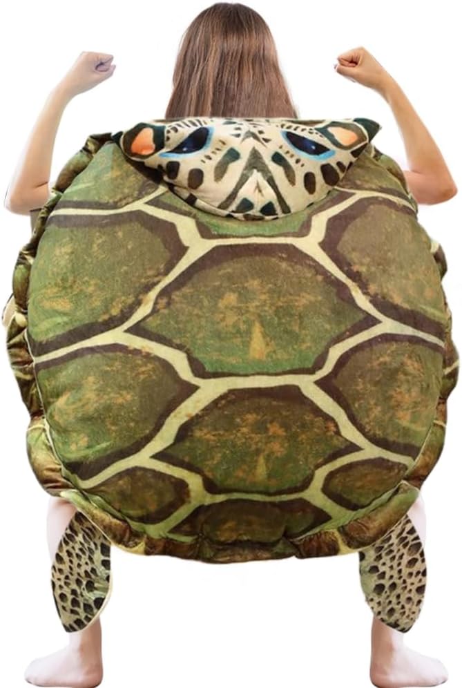 Feature: Product Name:Wearable Turtle Shell Pillows Material:Plush Size: 40in/100cm Weight: about 800g Package Includes: 1xGiant Turtle Stuffed Animal Note: Manual measurement, please allow slight errors on size The color may exist a slight difference due to different screen displays.