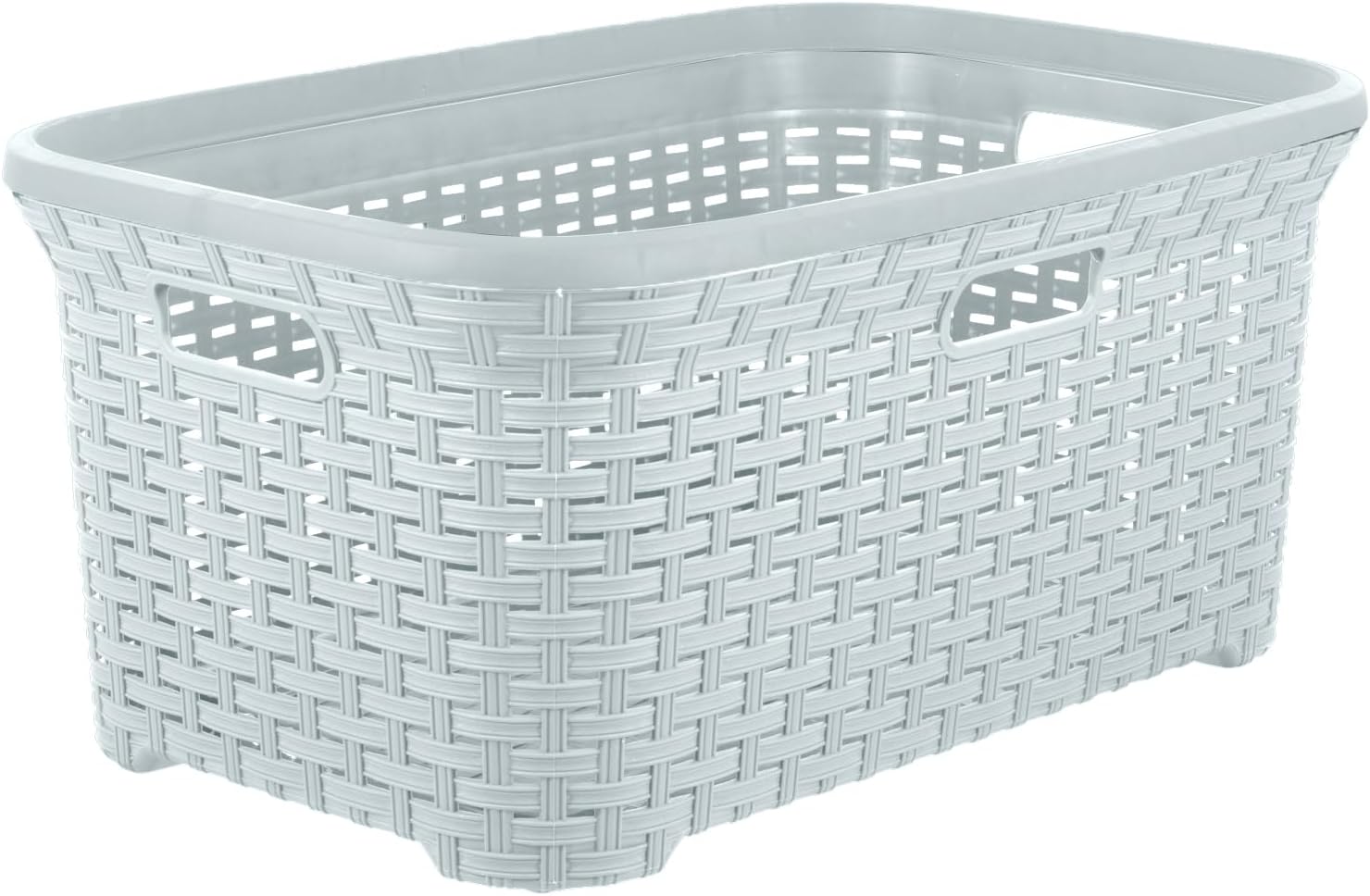 Designed Laundry Basket Plastic 2 Pack Storage Hamper Basket, White Smoke Cloths Basket Organizer with Cut-out Handles. Space Saving for Laundry Room Bedroom Bathroom, Wicker Design 50 Liter.