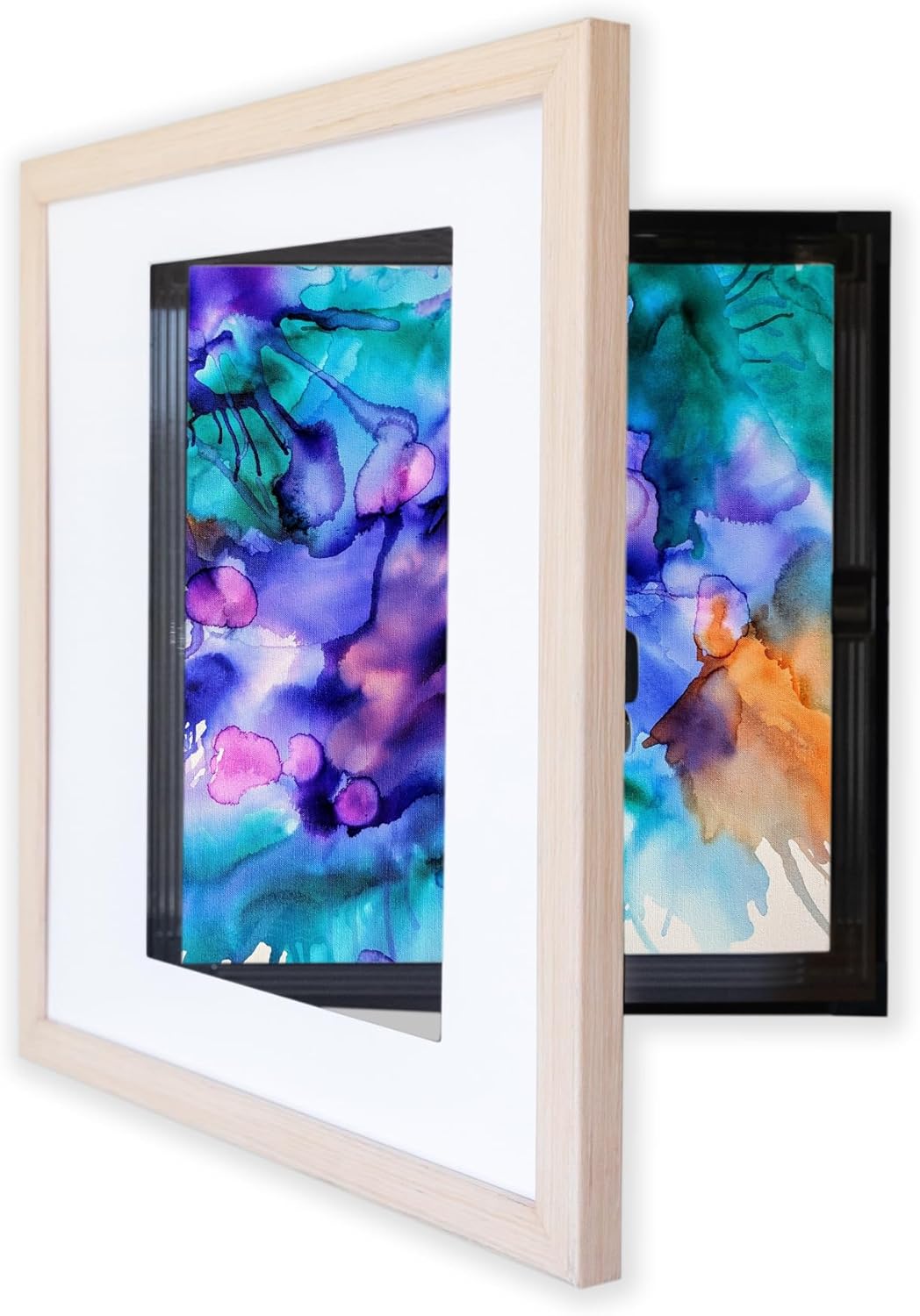 Dynamic Frames Front-Opening Storage Frame for 8.5x11 Prints; 17x17 Gallery Style with Acid-Free White Mat; Thin Profile; Includes Hanging Template & Hardware; Natural Finish