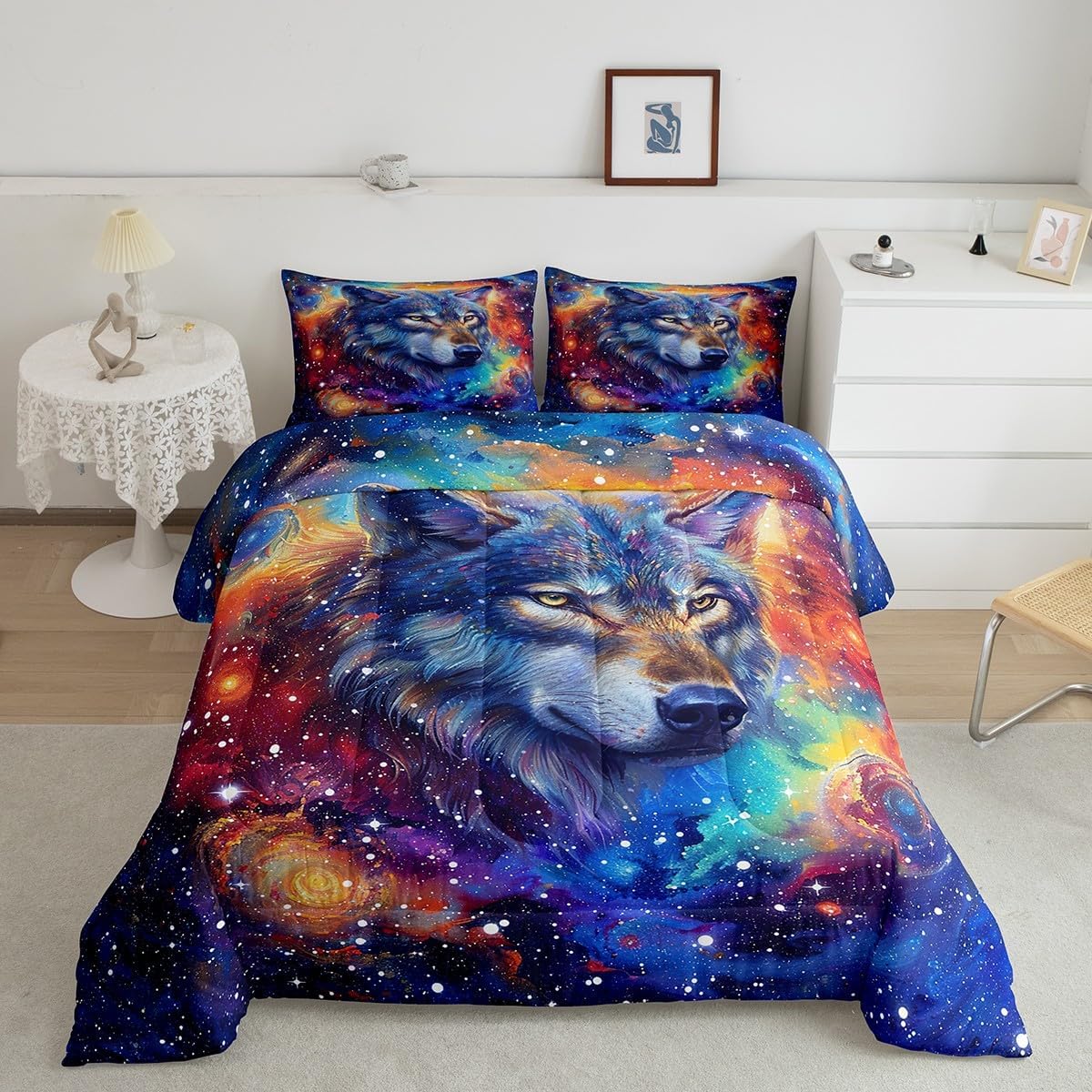 Makeover your bedrooms every season with our comforter sets; good item for your room, girls boys youth room, master bedroom Also a great decoration idea for your mom, dad, sister, brother, grandma, wife, husband, daughter, son and all other beloved Size Information:1 Twin size comforter 68" X 90" and 1 pillowcase 30" X 20"1 Full size comforter 79" X 91" and 2 pillowcases 30" X 20"1 Queen size comforter 90" X 90" and 2 pillowcases 30" X 20"1 King size comforter 104" X 90" and 2 pillowcases 36" X 20"Useful and practical: A practical product for homes, dorm rooms, hotels, guest rooms. Comfortable to use for being polyester which is soft and breathable Unique design:Vivid colors and clear printed with digital printing. These unique designs match well with various color of your rugs, curtains, headboard, furniture, and all other decor accessories Characteristic:As manufacturers of digital printed home textiles, we follow current trends and bring you new home fashion Either a comforter to your family or friend, relative or boyfriend girlfriend, or to yourself, the item should be interesting and authentic Note:The comforter and pillow cases are printed on the front side only, the back of them are white colored