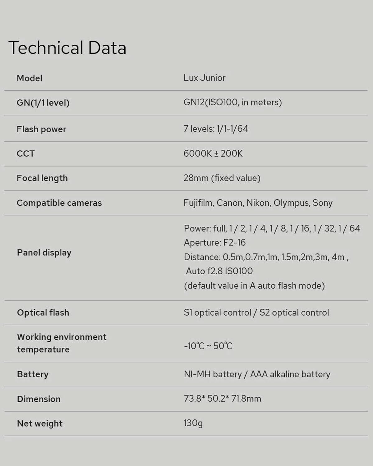 | Compatible Mountings | Canon, Sony, Nikon, Fujifilm, Panasonic, Olympus, ๐ก๐ผ๐ ๐๐ผ๐บ๐ฝ๐ฎ๐๐ถ๐ฏ๐น๐ฒ with ๐ฆ๐ผ๐ป๐ ๐ญ๐ฉ-๐ญ๐ (cameras without a single-contact hot shoe). Verify your camera's hot shoe type or check the compatibility list before buying. |