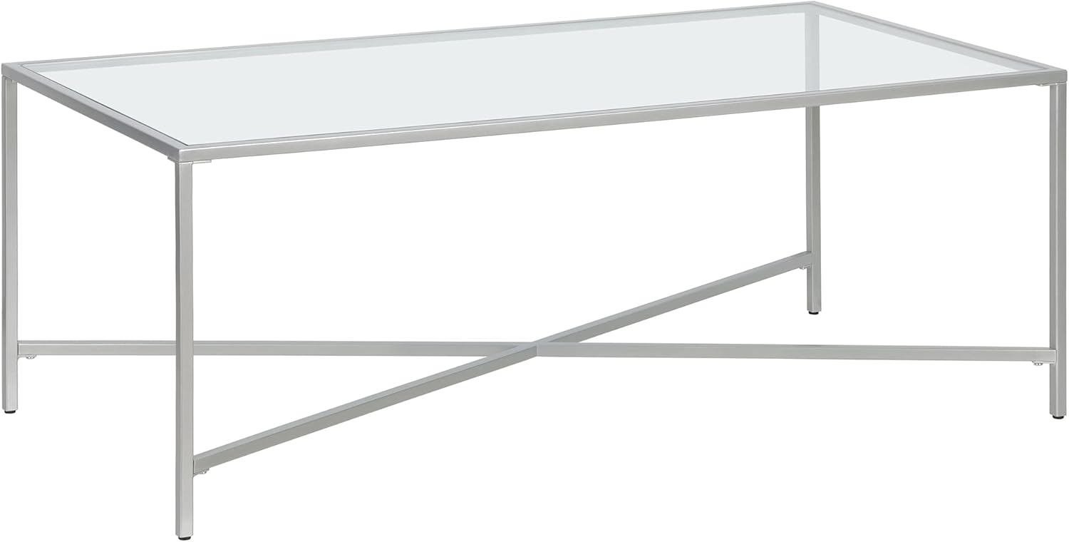 The Henn&Hart 55" Glass Rectangular Console Table in Gold combines modern industrial design with practical function. Its handcrafted steel frame and durable tempered glass top create a sleek surface perfect for entryways, living rooms, hallways, or offices. Clean lines are complemented by a geometric crossbar, adding visual interest without overwhelming the space. The tempered glass tabletop supports up to 30 lbs., ideal for lamps, décor, or framed photos. The neutral Gold finish and streamlined design allow it to blend seamlessly with a variety of décor styles. Easy assembly and simple maintenance make this table both stylish and functional.