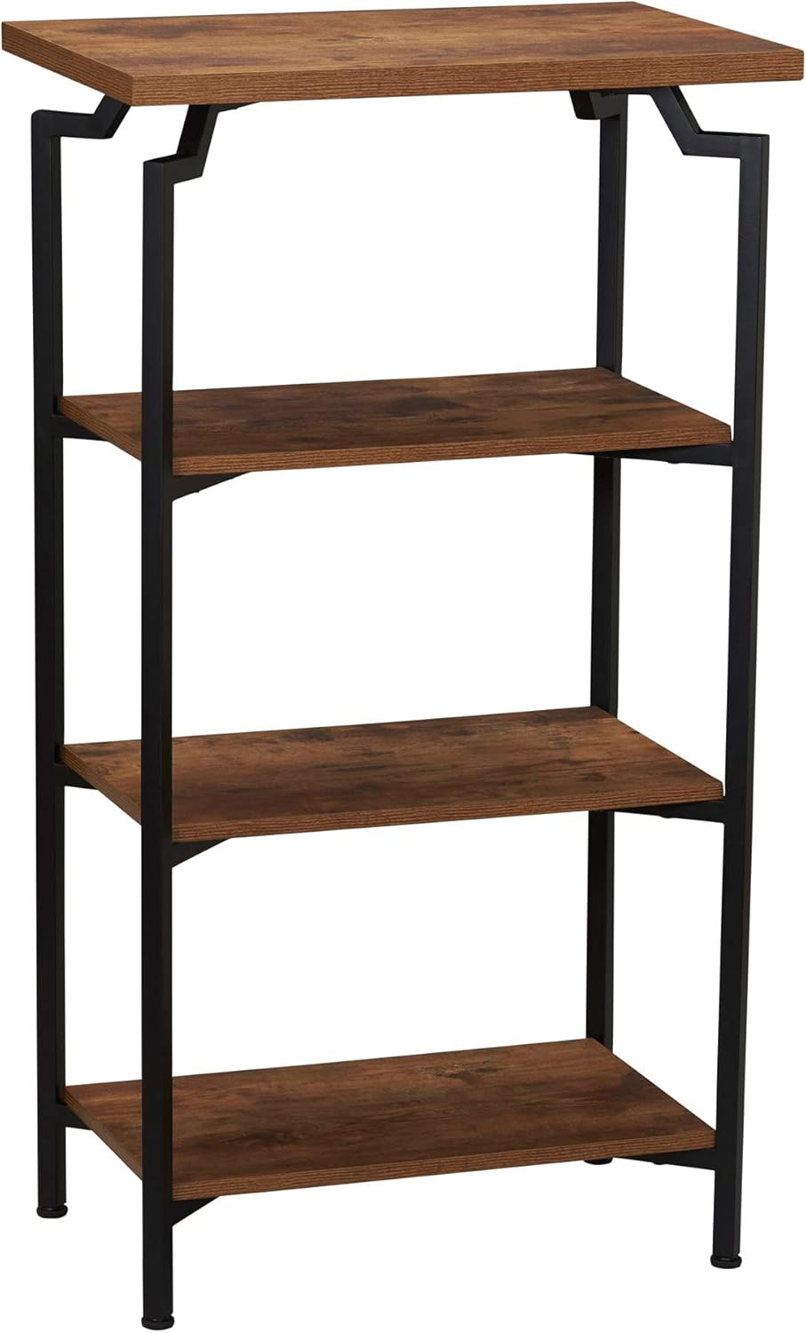 Household Essentials Crown TV Stand with Rectangular Storage Compartment Rustic Hickory Wood Grain and Black Metal