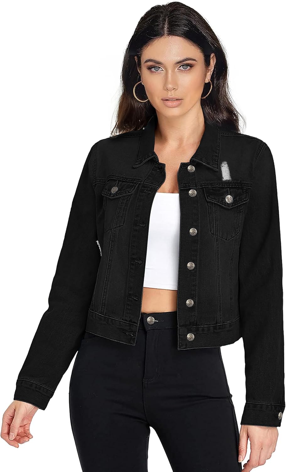 • FASHION DESIGN:This denim jacket features collared neckline design, button down closure, two flap chest pockets and side pockets, single breasted jacket.