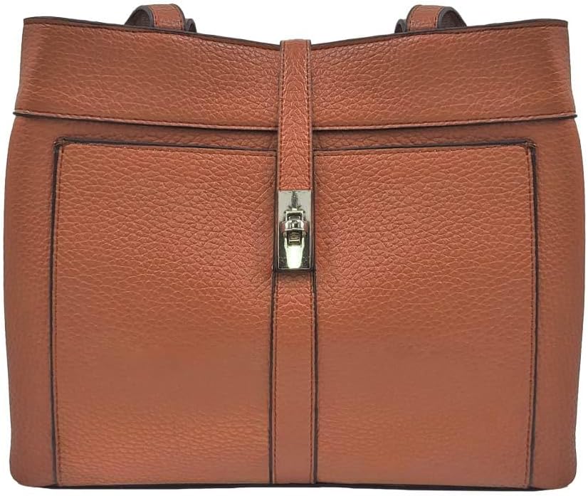 A larger tote that comes with a crossbody strap for when you need to go handsfree. With a front decorative clasp for an elegant look. You can wear this bag for any occasion. One large exterior open pocket and one interior side pocket, with a three tiered organization structure to give ample storage space.