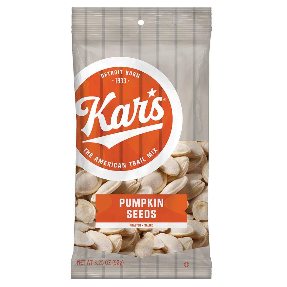 Satisfy your hunger with Kar’s Roasted and Salted Sunflower Kernels that includes (72) 2 oz individual snack packs. These bulk individually wrapped snacks are gluten-free and free of hydrogenated oils and trans fats. All of Kar’s Nuts products are also Kosher Certified. They make great travel snacks and are an easy addition to the office breakroom snacks stash and more. Featuring perfectly roasted sunflower kernels with a dash of salt, these snack packs are an easy way to add crunch, taste and nutrition to your diet. Sprinkle the shelled sunflower seeds over your salads, mix with popcorn, add to recipes, or enjoy straight from the pouch! It’s the perfect mid-day pick-me-up, lunch snack or anytime treat. Since our humble beginnings in 1933 outside of Tiger Stadium, Kar’s Nuts has become a nationwide sensation—and it all started with good ol’ roasted peanuts. You could say we pioneered the Sweet ‘N Salty Trail Mix movement, and if you did, you’d be right.