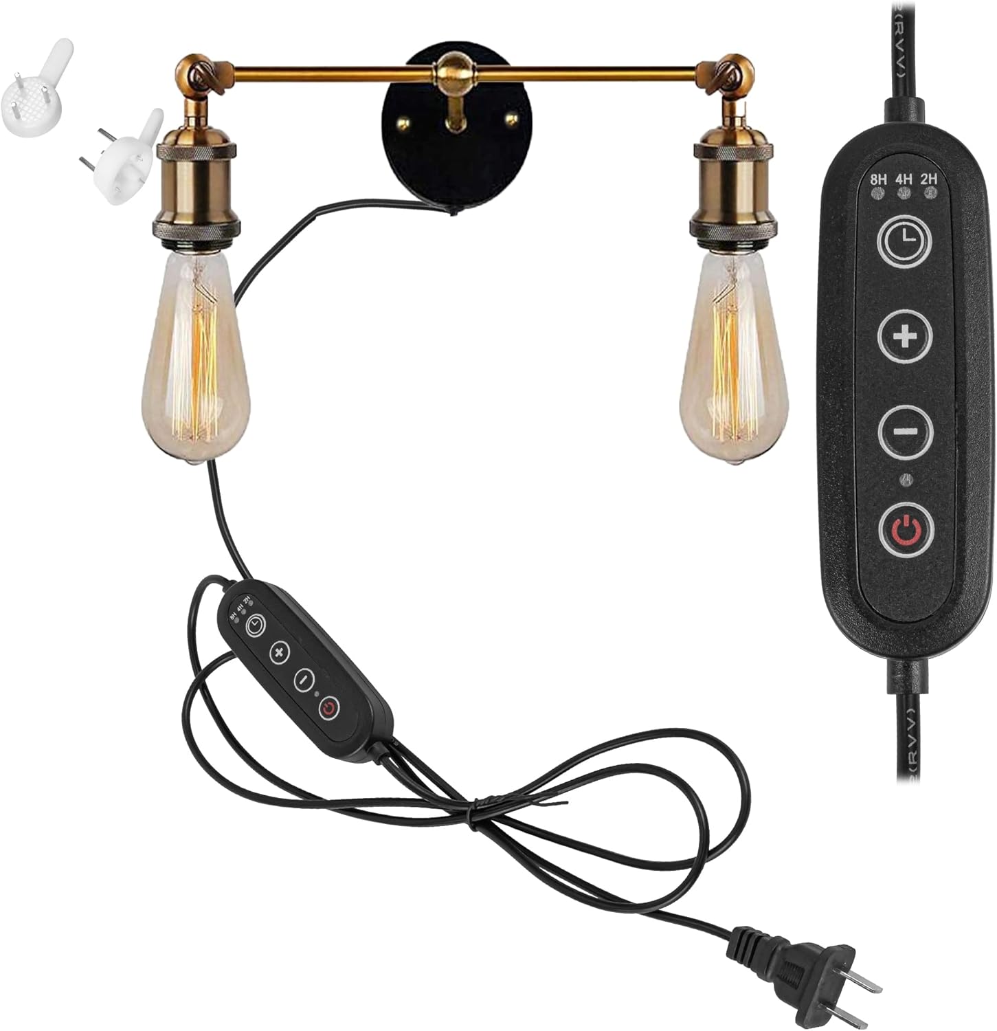 Kiven Dimmable Wall Sconce E26 UL Certification Plug-in Dimmer Switch,Occident Style Double Head Wall Sconces for Dining Room Kitchen Bedroom Shops Decorative,Bulb Included