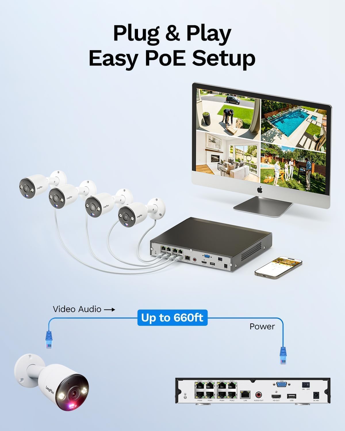 • ✅【8CH 12MP NVR】- Support 8pcs 12MP/8MP/5MP PoE IP Cameras, Multiple Add-on Options from LongPlus