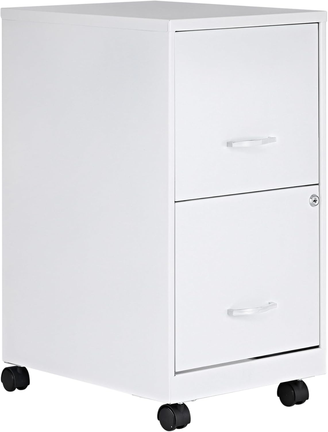 Mobile File Cabinet is the perfect-sized filing solution for a small or home office. Two locking file drawers open and close with smooth-glide suspension for easy access to your important, frequently used documents. Full high-side drawers accommodate letter-size, hanging file folders and feature a 3/4 drawer extension. Cam lock secures both drawers. Four casters allow you to move the pedestal where you need it. Painted steel surface is nonporous and easy to clean. The 18" depth makes it easy to slide under worksurfaces.