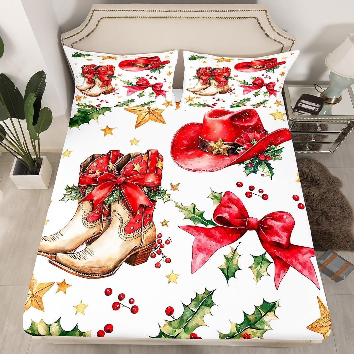 Package Include: Fitted sheet and Pillowcase, our high quality designs match any decor.Top Sheet Not Include High quality Fitted Sheet Set 3D Pattern Bedding Set, simply decorating your rooms any time you want, bringing you fresh feel for year round use. Size Information: Twin size 2pcs Fitted Sheet set: 1 Fitted Sheet 39"W x 75"L x 16"H, 1 pillowcase 20" x 30" Full size 3pcs Fitted Sheet set: 1 Fitted Sheet 54"W x 75"L x 16"H, 2 pillowcase 20" x 30" Queen size 3pcs Fitted Sheet set: 1 Fitted Sheet 60"W x 80"L x 16"H, 2 pillowcase 20" x 30" Personalize your bedroom: Beautiful design and colorful print, makes your bedroom unique and brings you a wonderful dream. Washing instructions: Machine wash separately in cold water,hang dry, do not bleach. Occasion: The soft Fitted Sheet bedding sets designed for Children ,Adult, Men, Women, Teens. This Bedding set is also suitable for full seasons, Spring, Summer, Autumn and Winter. More Decor: Search our store to get more christmas theme, new year theme, autumn fall theme, any holiday theme, modern abstract, farmhouse rustic theme, simple pattern, garden flowers etc. home decoration. Warm Tips: 1.Please allow 1-3cm error due to manual measurement. 2. Actual color may vary from the color on your screen due to monitor color restrictions.