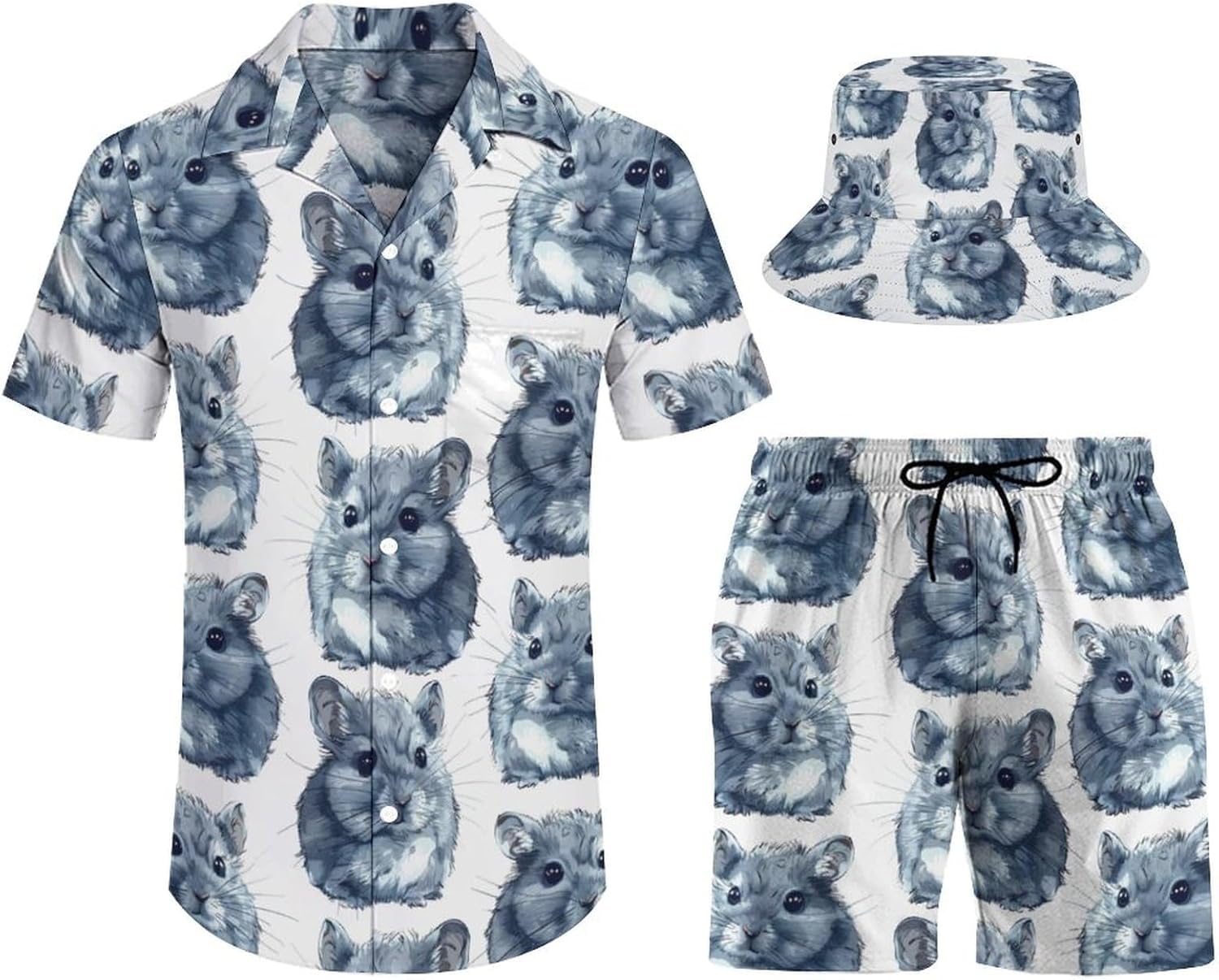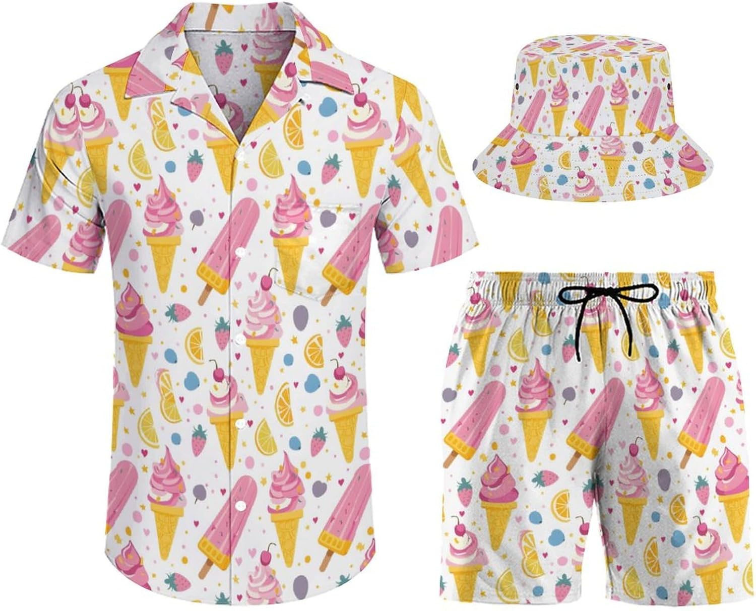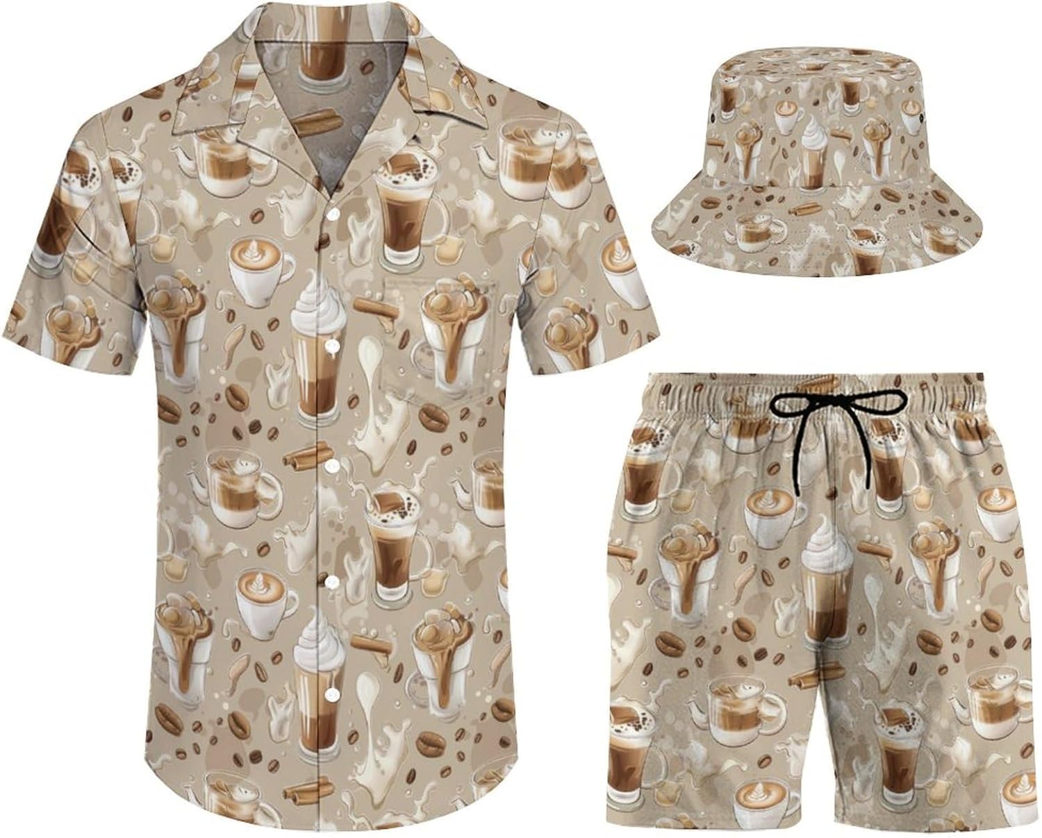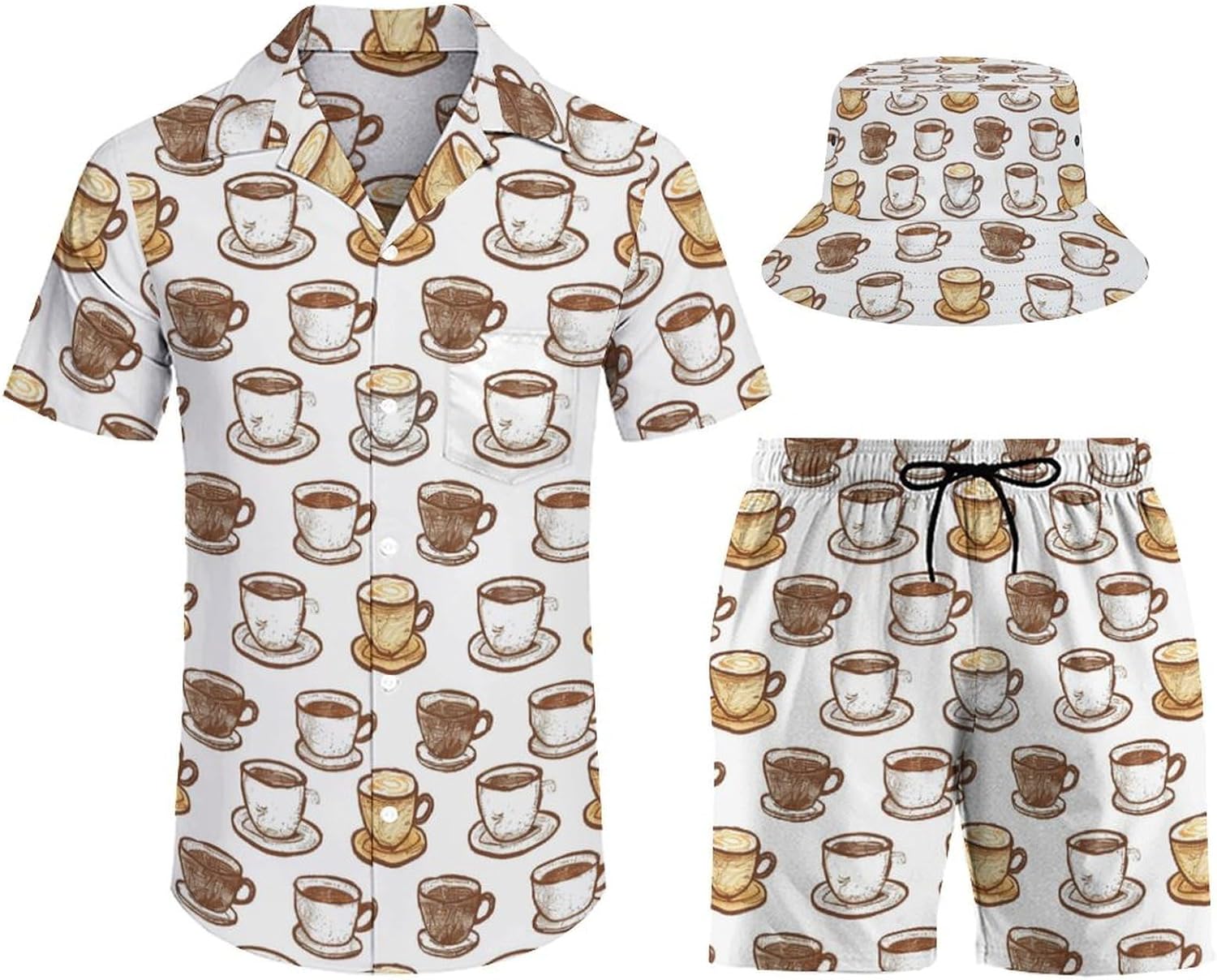 Men's Hawaiian shirt and matching shorts, soft and comfortable, breathable, loose fit, button closure. Hawaiian beach shorts with pockets for keys, phone, coins and other small accessories. Mid-rise, elasticated waist and drawstring closure, a simple, classic addition to a shirt and shorts set for summer comfort.