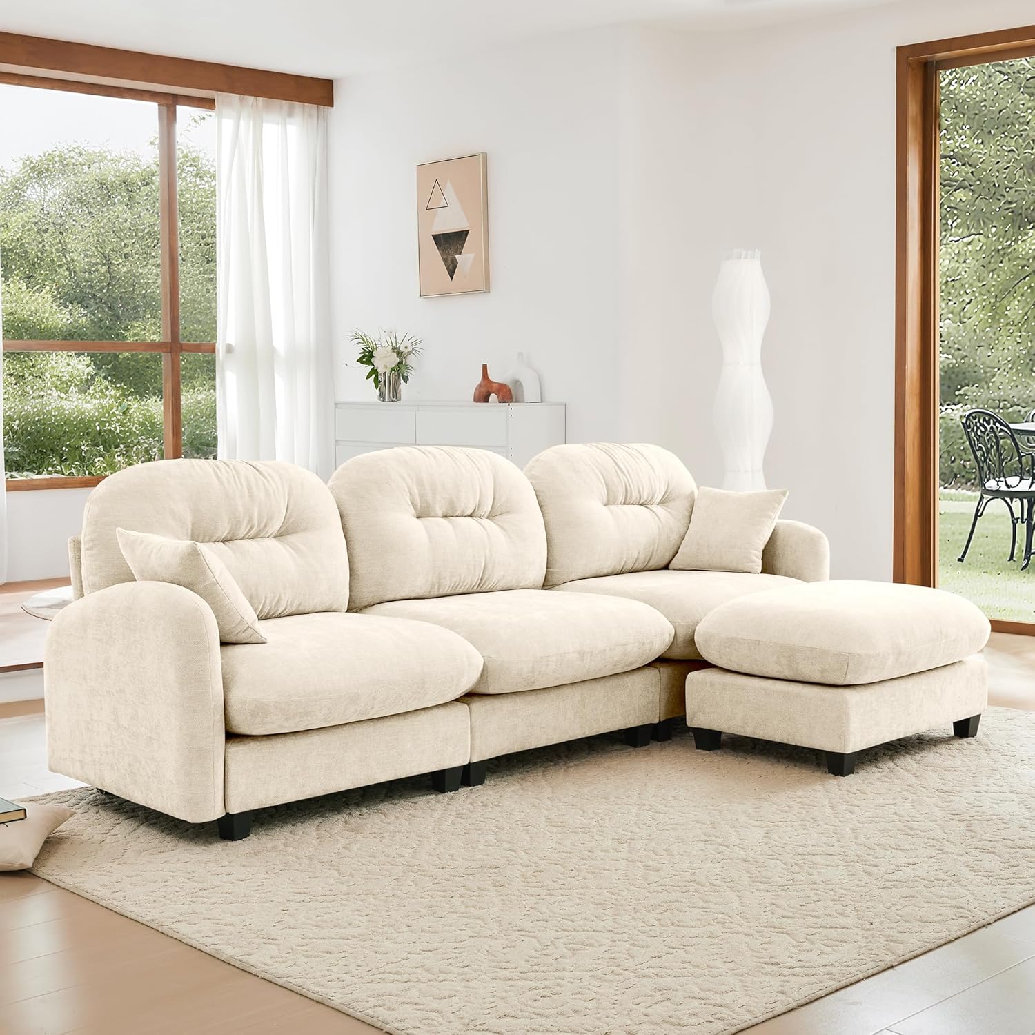 📖 Product DescriptionTransform your living room into a relaxing retreat with our Modular Sectional Sofa with Ottoman, a perfect blend of cloud couch sectional comfort and traditional frame durability. This L-shaped sectional sofa with chaise features soft chenille fabric upholstery and double cushions for an ultra-plush cloud sofa experience that rivals top brands like Ashley Furniture sectional, Thomasville 8-piece modular sectional, Structube couch, and Vanomi modular sectional sofa.The deep sectional sofa design provides oversized seating, making it an excellent choice for sectional couches for living room, oversized couches for living room, or a cream sectional sofa centerpiece. Whether you prefer a cloud modular sectional sofa, a white cloud couch modular sectional, or a u-shaped cloud couch setup, this sofa adapts to your lifestyle.Engineered with a traditional solid wood frame, it’s more supportive than a boneless modular cloud couch yet still delivers the fluffy sectional cloud couch feel. The ottoman and comfort chaise allow you to easily customize the layout into a pit sectional or oversized modular sectional sofa configuration.The soft chenille fabric is not only cozy but also washable and low-maintenance, making it a practical upgrade from velvet sectional sofas or sofa bouclé options. Designed for modern oversized sofa living rooms, it provides plush sectional seating, washable modular covers, and deep seat sofa relaxation that the entire family can enjoy.Perfect as a cloud oversized couch, white modular couch, or oversized sectional sofa gray alternative, this piece is a top-selling cloud couch dupe that combines style, comfort, and everyday durability.