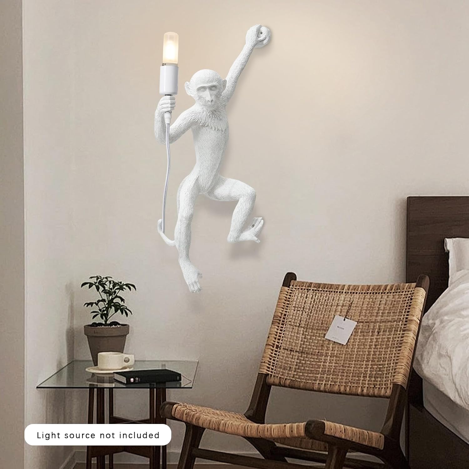 DescriptionA good wall lamp can add ambiance and charm to a space. Our monkey wall lamp is crafted from premium material to ensure long-lasting use. Mounted on the wall, it provides companionship, allowing you to enjoy a bright light while reading, or playing. Whether for decoration or illumination, this product is your ideal choice.Key FeaturesEffortless Cleaning: The simple structure allows you to easily clean it with a wet cloth (not included). Ideal Gift: With its creative appearance and practical function, it is an ideal gift for family, friends, and colleagues on housewarming daysExcellent After-Sales Service: We aim to provide quality products and services. If you have any problems, please feel free to contact us. We will reply to you and solve the problem for you as soon as possible. ApplicationWith a lighting range of 107.64-161.46ft², this product is suitable for a bedroom, living room, office, yoga room, college dorm room, coffee shop, library, dining room, kitchen island, hallway, foyer, or study room.SpecificationsMaterial: ResinProcess: GrindingColor: Gold/WhitePower Source: Corded ElectricPlug Type: US Standard Efficiency: EInstallation Required: YesMounting Type: Wall MountedIndoor/Outdoor Usage: IndoorSwitch Type: Push ButtonLight Source: 1* E26 Bulb(Not Included)Voltage: 110VApplicable Max. Bulb Power: 60WApplicable Area: 10-15㎡/107.64-161.46ft²Power Cord Length: 1.8m/5.91ftProduct Size(L*H): 35*70cm/13.7*27.5inPackage Size: 72*44*23cm/28.35*17.32*9.06inGross Weight: 2.8kg/6.17 lbsNet Weight: 2.66kg/5.86 lbsPackage Included1* Monkey Wall LampAll Accessories for Installation Notes1.Please check the product size before ordering to make sure it fits your needs.2.Please use the lamp within the applicable voltage range and clean the lamp regularly. 3.Please note that this product does not include light bulbs. Please prepare an E26 light bulb yourself.4.Please do not install the light next to the air conditioner or heater, which will affect the service life of the light. 5.Please allow the slight color difference caused by the shooting light and 1-3cm error due to manual measurement, and make sure you do not mind before you order.