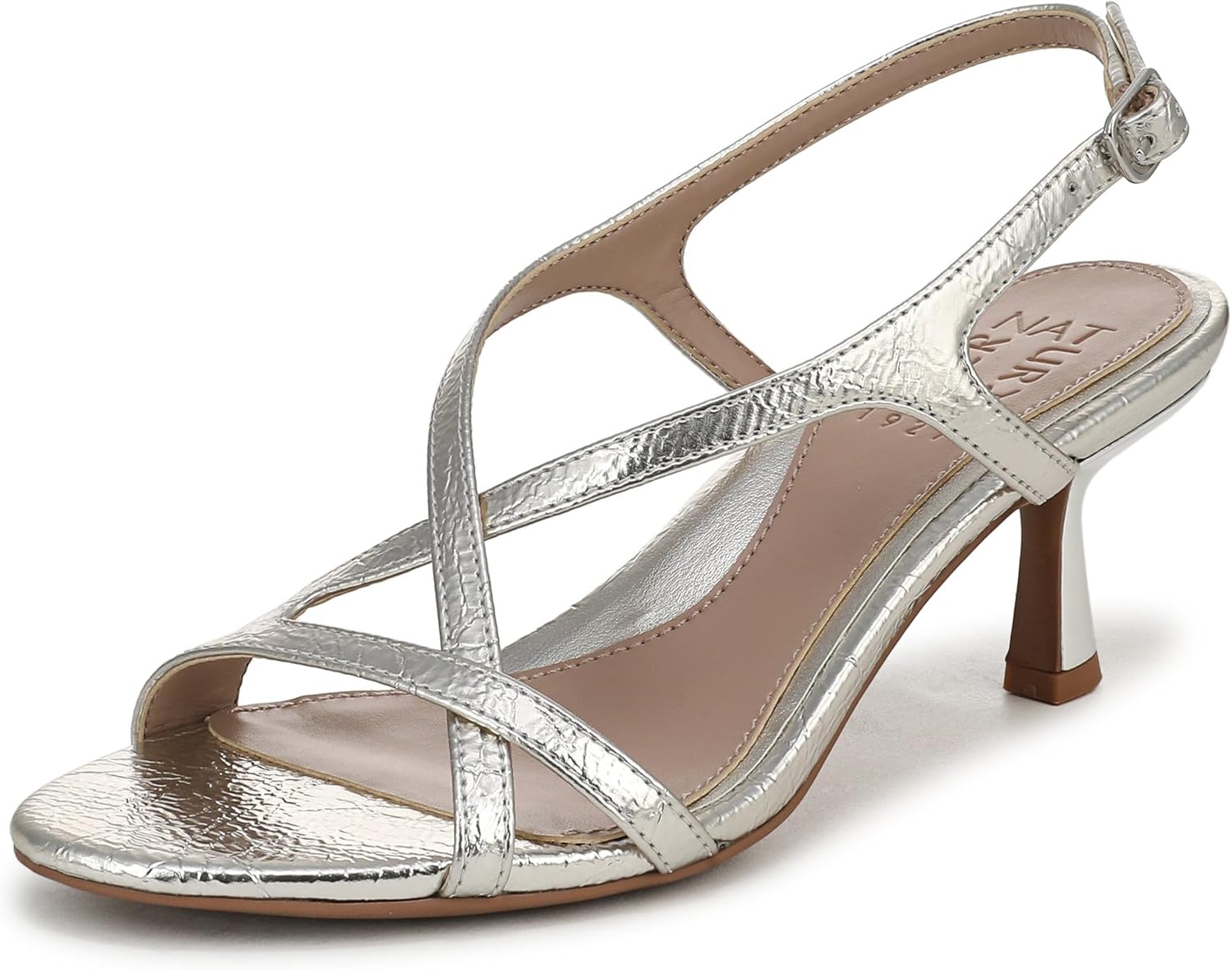 • ELEGANT DESIGN: Sculpted slingback sandal featuring a refined open toe and delicate crisscross straps at the back for a graceful look.