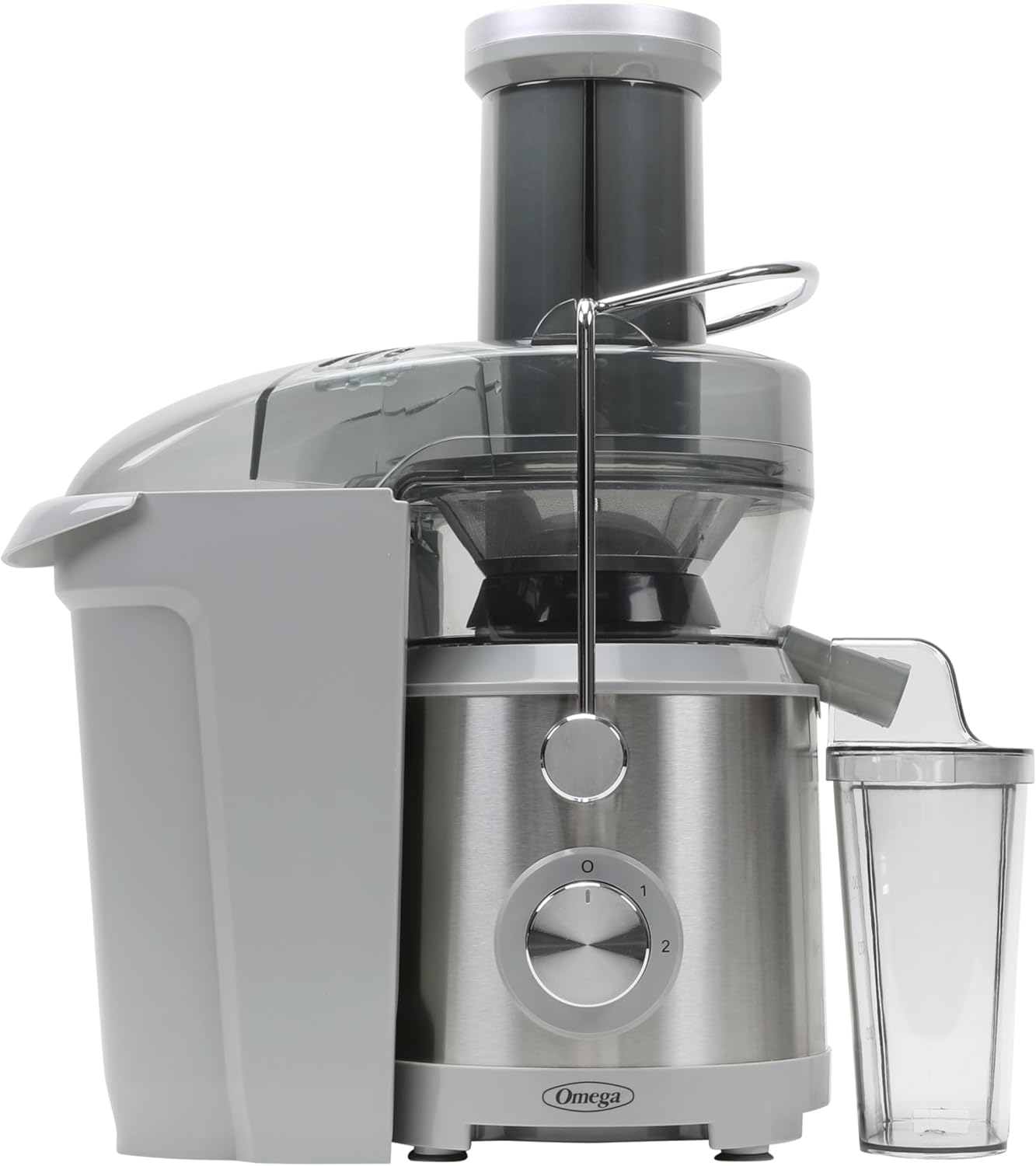 Introducing the new Omega High Speed juicer, perfect for your daily serving of fruits and vegetables in seconds. The 1000-watt juicer is designed for fast, easy, efficient juicing. The juicer features a large 3-inch chute that fits larger pieces of fruits and vegetables, minimizing the cutting and slicing to reduce prep time. 2 speeds to accommodate a variety of produce from soft to hard to meet all your juicing needs. Equipped with a durable stainless-steel filter, this juicer delivers a fast and optimum juice extraction. With the included juice container with splash guard, you can juice confidently without making a mess. The accessories are dishwasher safe to ensure you spend more time juicing, less time cleaning. Whether you are a health enthusiast, a busy parent, or simply someone who enjoys freshly squeezed juices, the Omega High Speed Juicer with Large Chute is the perfect juicer to help kick start your juicing journey. Get delicious, nutritious juices daily in the comfort of your own home. Here’s to vibrant living!