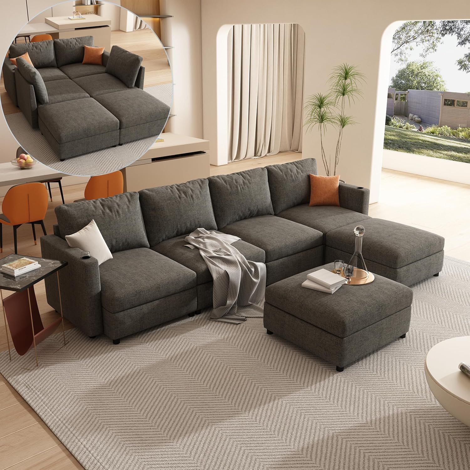 Item Type Name Oversized Modular Storage Sectional Sofa Customizable Seating Group Sofa&Couch Convertible Sleeper Sofabed with Movable Ottomans and Seat, U-Shaped Chenille Upholstered Sofa Couch for Living Room
