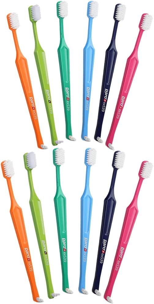 Introducing the Paro EXS39 toothbrush - the ultimate solution for those who love using ultra-soft brushes for their dental care routine. With its extra-sensitive filaments, this toothbrush is perfect for post-operative care, inflamed and irritated gums, exposed and sensitive toothnecks, and anyone who wants a gentle and thorough clean. The Paro EXS39 boasts 39 filament bundles arranged in 5 rows, which work together to clean your teeth and reach deep into interdental spaces for a thorough clean. The ultra-soft filaments are gentle on your teeth and gums, ensuring a comfortable brushing experience every time. In addition to its superior cleaning performance, the Paro EXS39 comes with exchangeable Paro Interspace F, which is specially designed to reach the difficult-to-clean areas in your mouth. This makes it easier to clean around braces, dental implants, and other dental devices, ensuring that your teeth and gums are always healthy and clean. Whether you have sensitive teeth or simply prefer a gentle brushing experience, the Paro EXS39 is the perfect toothbrush for you. So why wait? Try it today and experience the difference for yourself!