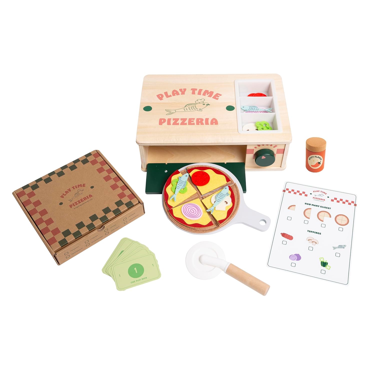 Bake up creativity, confidence, and hands-on learning with Pearhead’s Wooden Bakery Montessori Pretend Baking Toy Set! This delightful 25-piece wooden bakery shop playset transforms playtime into a world of imaginative role play where toddlers can “mix,” “bake,” and “decorate” their very own pretend cookies. Perfect for ages 3 and up, it encourages independence, sequencing, and storytelling through realistic, open-ended baking adventures. This educational wooden baking toy includes everything your little baker needs to run a pretend bakery — a wooden oven with clicking timer dial and built-in storage, a baking tray, cookie pieces with interchangeable frosting, an oven mitt, a treat bag, and play money for pretend transactions. Children can design their own cookies, “bake” them in the oven, and package them to sell, just like a real pastry chef. These interactive elements promote hand-eye coordination, color and shape recognition, and early math and social-emotional skills. Inspired by Montessori principles, this wooden pretend play kitchen set fosters creativity, patience, and concentration while teaching children to follow multi-step routines. The mix of wooden and felt textures engages the senses and supports tactile development, helping kids explore real-world concepts like cooking, sharing, and organizing. Crafted from FSC-certified wood, soft felt, and non-toxic, child-safe paint, the Pearhead Wooden Bakery Shop is both safe and sustainable. Its modern, gender-neutral design makes it a beautiful addition to Montessori playrooms, home kitchens, and classrooms alike. With its built-in storage and heirloom-quality materials, this wooden oven toy is designed for long-lasting imaginative fun — a perfect screen-free gift for birthdays, holidays, or preschool learning environments. Dimensions: 11.75" W x 8.5" H x 3.5" D. For ages 3 years and up.