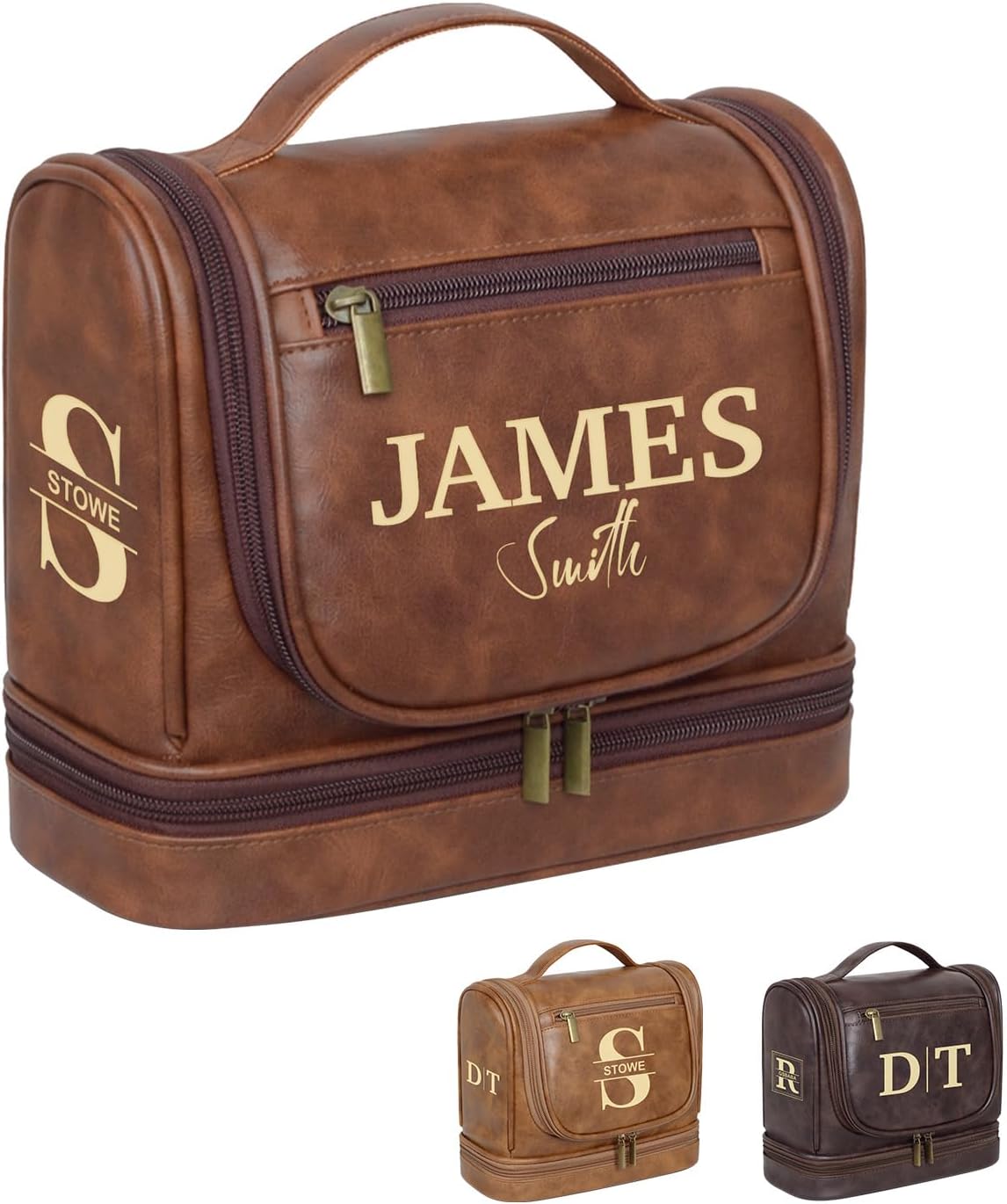 Elevate your travel essentials with this sophisticated leather toiletry bag, perfect for the distinguished gentleman. This versatile dopp kit features a robust three-layer structure with thick, shockproof protection and retro two-color PU leather construction. The bag's thoughtful design includes multiple compartments with zipper closures and brass hardware accents, ideal for organizing all your grooming necessities. it offers ample space while maintaining a compact form. The water-repellent exterior helps protect your belongings from splashes and spills. Make it uniquely yours with custom engraving - add initials, names, or a special message for that personal touch. Whether it's for a wedding party, family camping trip, anniversary celebration, or Father's Day gift, this toiletry bag combines functionality with sophisticated style. Perfect as a meaningful gift for dad, husband, groomsmen, or that special someone in your life. The adjustable dividers allow for customized organization, while the durable construction ensures long-lasting use through all your adventures.