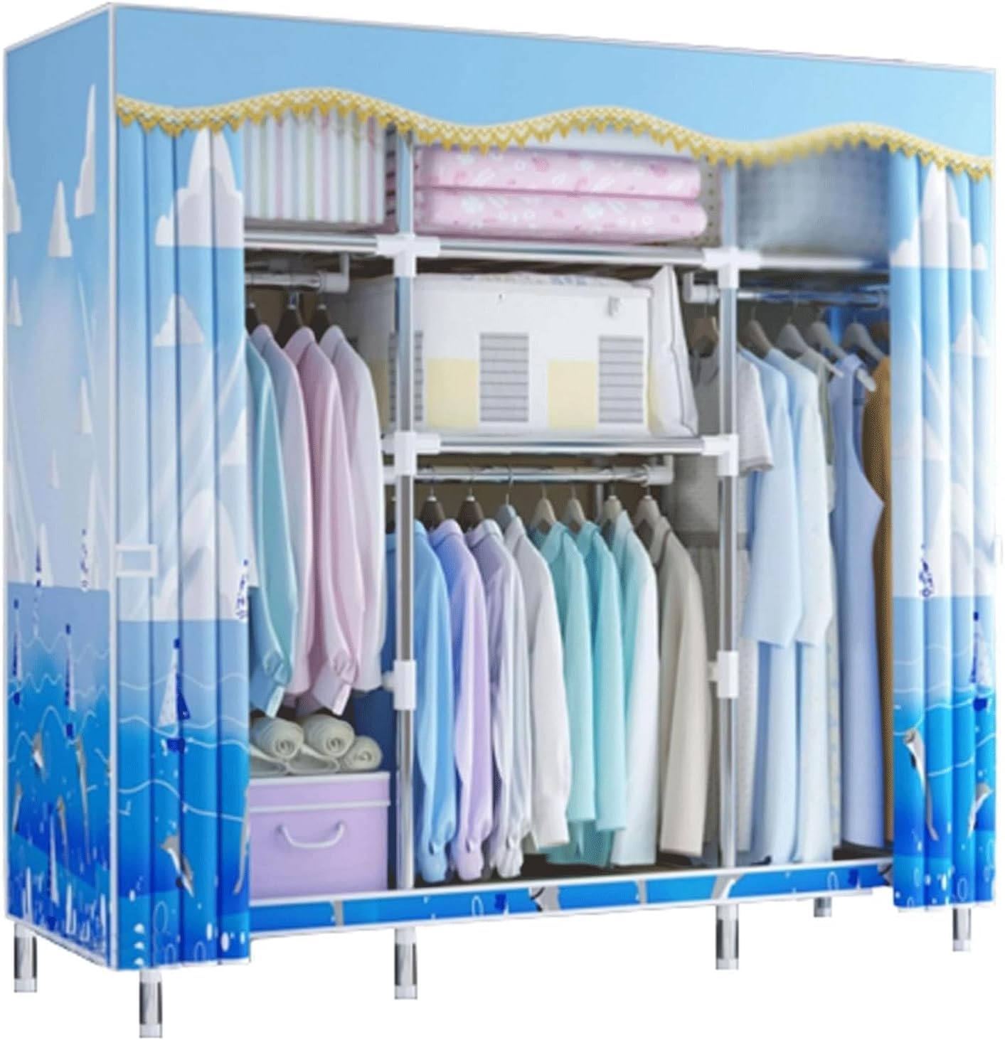 Say goodbye to clutter: This closet has various storage sections, it can be placed in various small spaces, saving you time and space. It helps you keep your clothes and accessories organized, so you can find what you need when you need it.Feature:our wardrobe it provides super load capability to ensure sturdier and more stable, not be bent easily, will prove to be sturdy and works for years.That creates a spacious space for for bedroom,to meet your long term and all aspect storage need.product name: closet/portable closet/clothes closet/portable closets/wardrobe closet/portable wardrobeCondition: 100% brand newFeatures: Quick and easy assembly, light weight, easy to move,DetachableItem Weight:9.92 poundsPackage Dimensions:27.56 x 9.84 x 7.87 inchesProduct Material:Steel,Polyester cottonProduct Size:L:82cm/32in, 143cm/56in, 123cm/48in, WxH: 45x168cm/18x66inProduct Weight:4.5-8.5kg/10-19lbPacking list: 1 X closetsIf you have any questions about the product, please contact us and I will reply you within 24 hours
