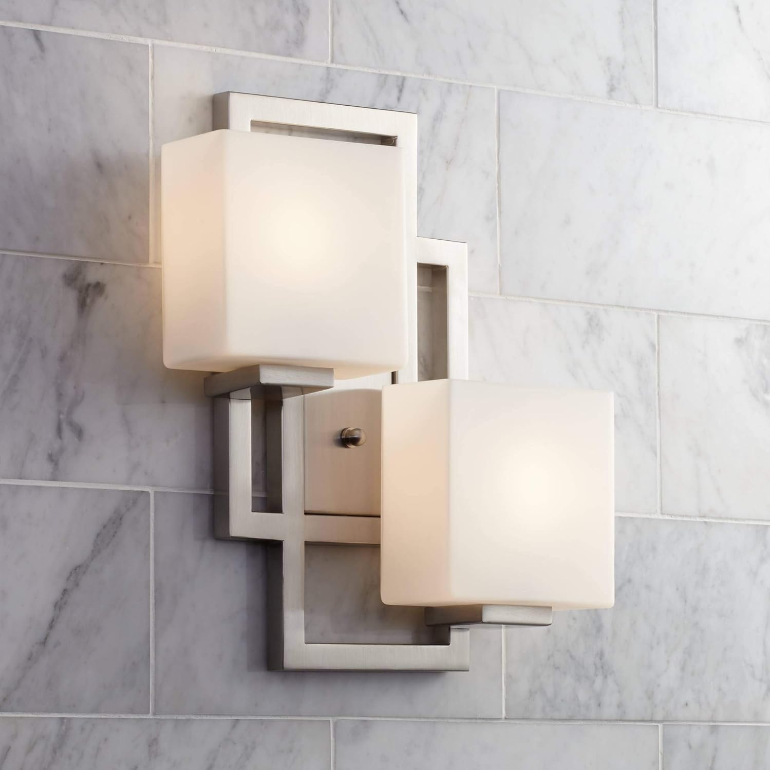 • 【High Quality Lighting】Contemporary modern bath light from the Lighting on the Square collection by the Possini Euro Design brand. Square opal glass shades. Bronze finish metal construction. Can be installed with the glass facing up or down. ADA-compliant design.