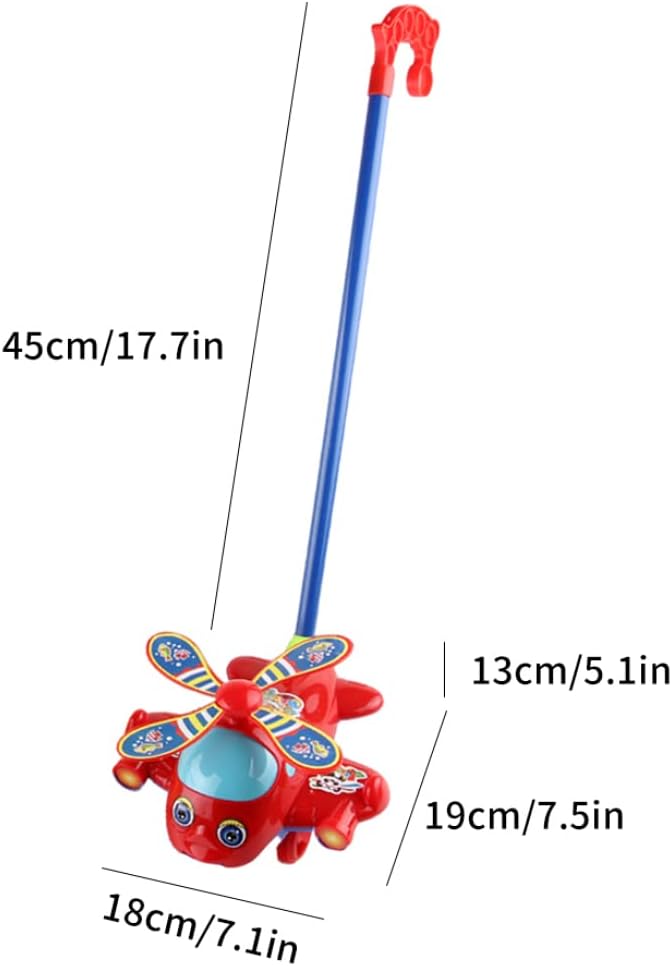 Description: This classic push along toy provides hours of entertainment for babies. It is a good way to exercise. It encourages babies to actively participate, run around with cute airplanes, and learn to walk. The rubber wheels are very quiet and leave few on the wooden floor. When the toddler pushes this toy throughout the house, she will walk forward happily. Features:. Push Along Toy. -Color: Random Color. -Material: Plastic. -Size: Airplane: 18x19x13 cm/7.09x7.48x5.12 inch. Long handle length: 45 cm/17.72 inch. Note: 1. The color in the photo may vary slightly due to lighting and different screen. 2. Please allow 1-3 cm deviation due to manual measurement. Package Including 1 * Push Along Toy