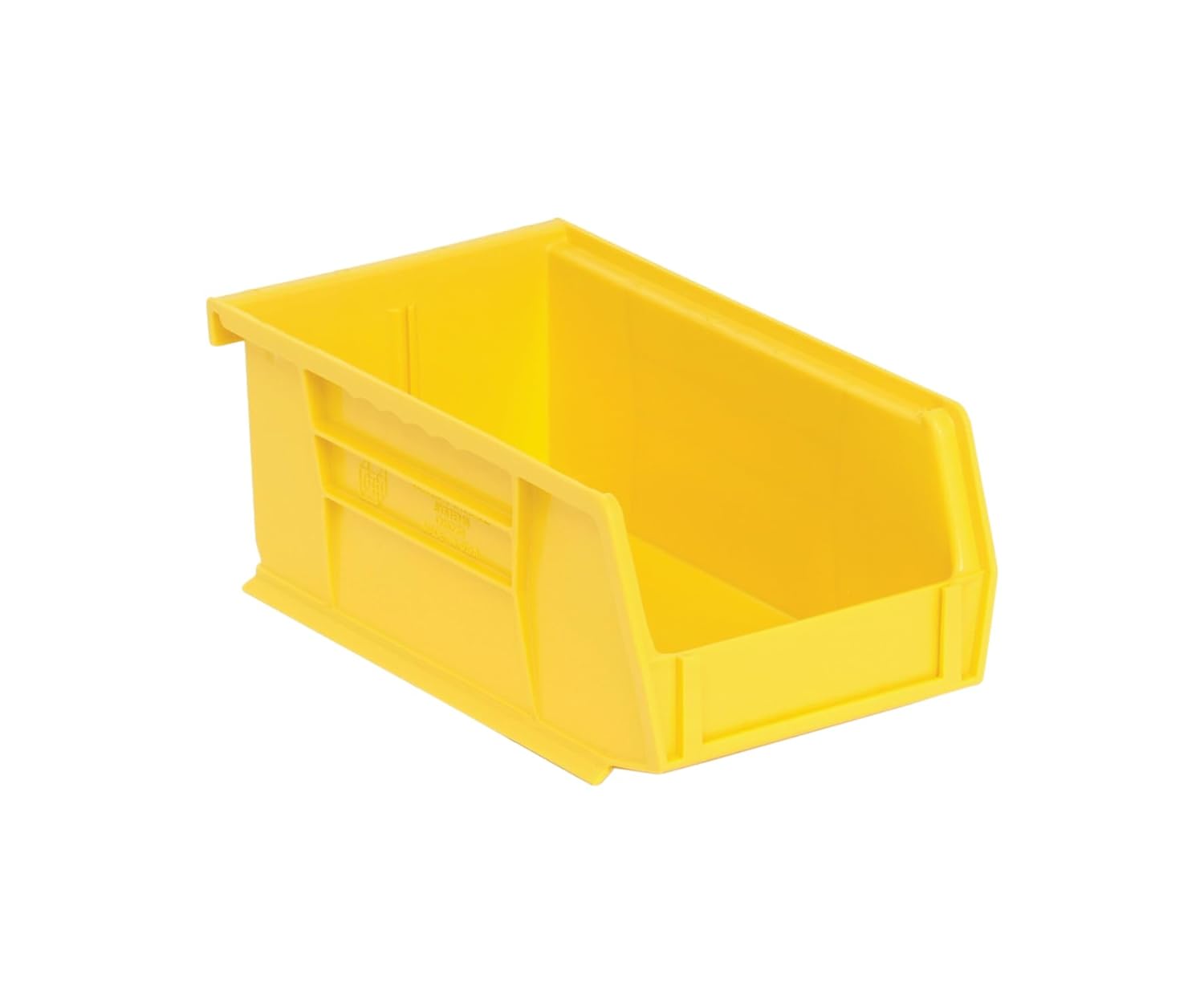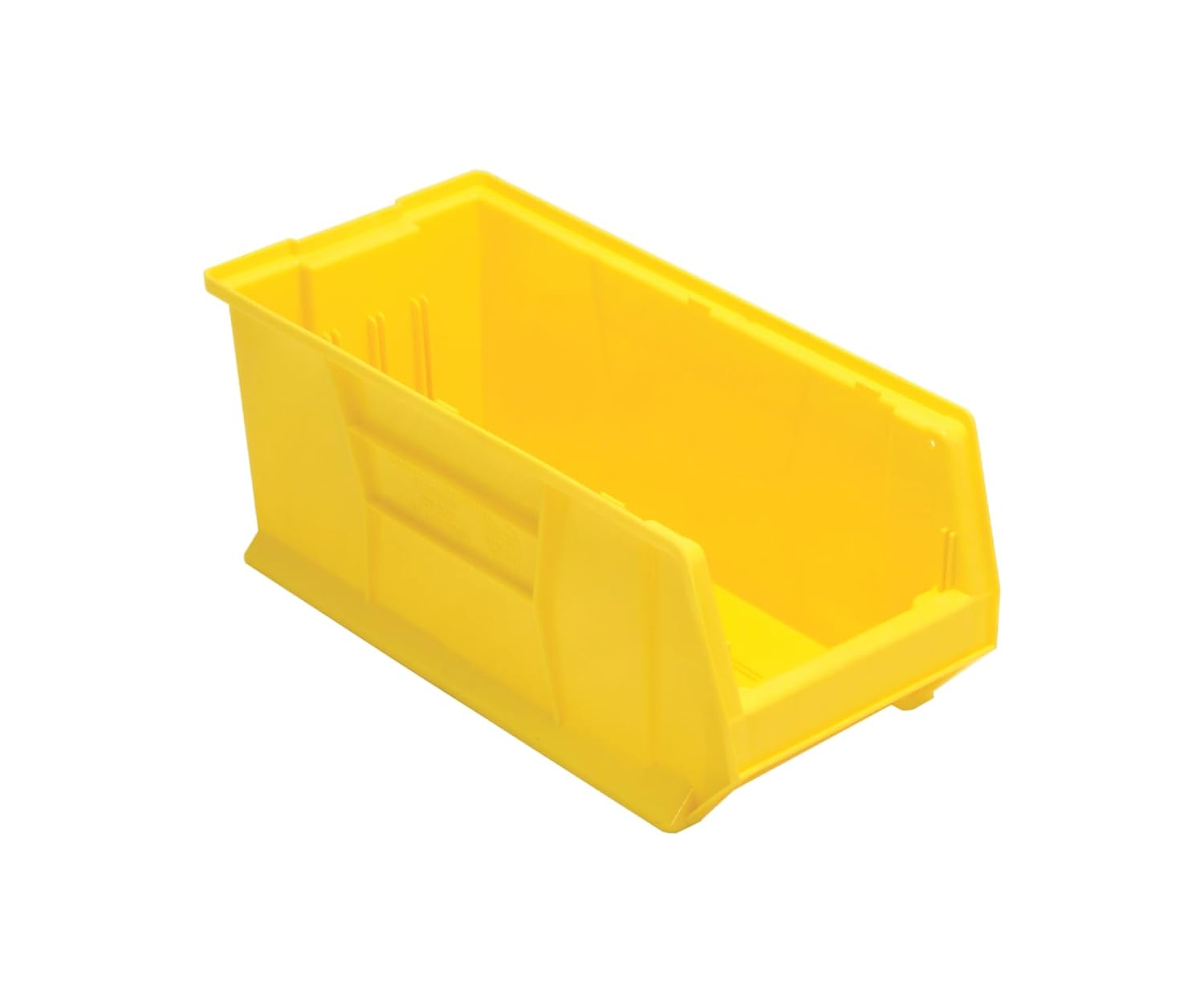 Ultra Stack and Hang Bins organize your inventory with these strong bins. Front, back and side grips for easy handling. Built-in rear hanger allows bins to hang from louvered panels or rails. Optional clear injection molded crystal styrene window front increases bin capacity and provides quick view of bin contents. Dividers maximize flexibility and keep contents organized. Wide stacking ledge and anti-slide lock keep stacked bins steady and prevent forward shifting. Water, rust and corrosion proof. Easily cleaned with soap and water and impervious to most chemicals. Large molded front label slots for ID labels. Autoclavable up to 250°F and resistant to extreme cold. Available in blue, green, ivory, red, yellow, black and clear.