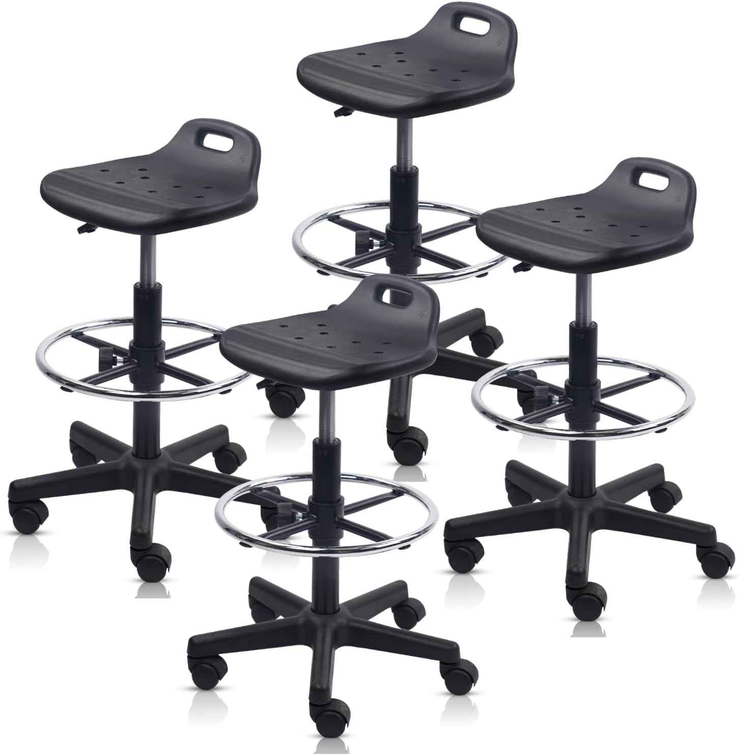 Round Rolling Drafting Stool with Foot Rest, Height Adjustable Swivel Multi-Purpose Office Desk Chair with Breathable Seat Cushion Stools for Home Bar Kitchen Salon Spa Medical, Black 1PK