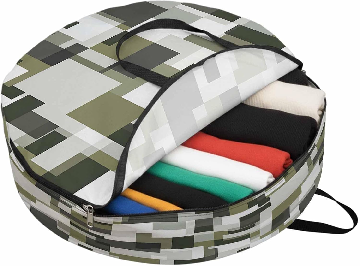 Reclaim Your Closet Space with the Round Storage Solution! Material: polyester Diameters: 24 inch, 30 inch, 36 inch Depth: 7 inches Package Includes: Round Storage Bag One Bag, Endless Possibilities: Whether you are swapping out your summer wardrobe, moving into a new dorm, or packing away holiday decorations, this bag has you covered. The circular design is uniquely suited for: Bedding: Comforters, quilts, sheet sets, and oversized pillows. Clothing: Winter coats, sweaters, and bulky ski gear. Home Decor: Holiday wreaths, garlands, and floral arrangements. Outdoor Gear: Camping blankets, sleeping bags, and beach towels. Dual Zippers: The high quality double zipper design allows the closet organizer to open wide from both sides, making it effortless to load and unload even the bulkiest comforters or wreaths. Reinforced Handles: Sturdy, reinforced handles are securely stitched to provide extra strength and a comfortable grip when carrying heavy loads or pulling the bag from under a bed. Clear Label Pocket: A transparent built-in label holder allows you to quickly identify the contents of each bag without ever having to unzip it, keeping your storage perfectly organized.