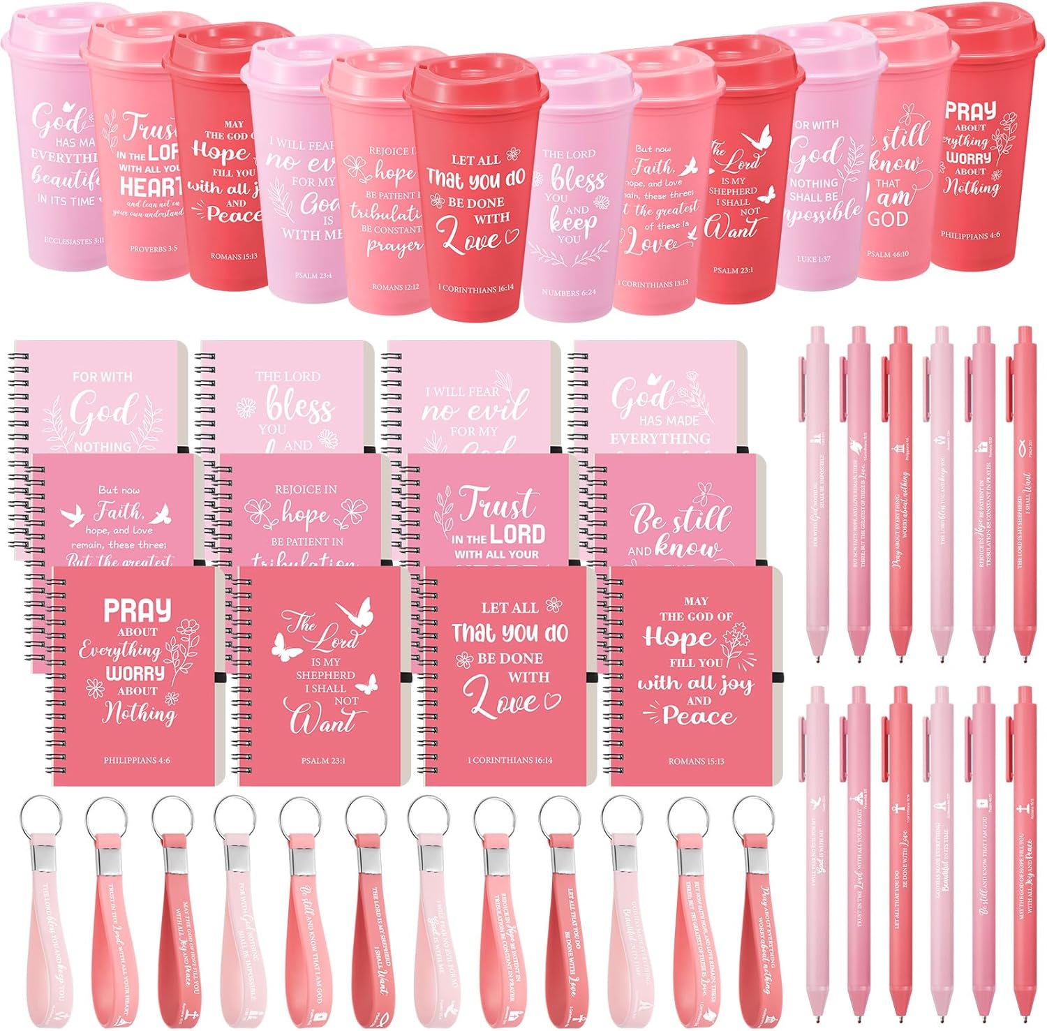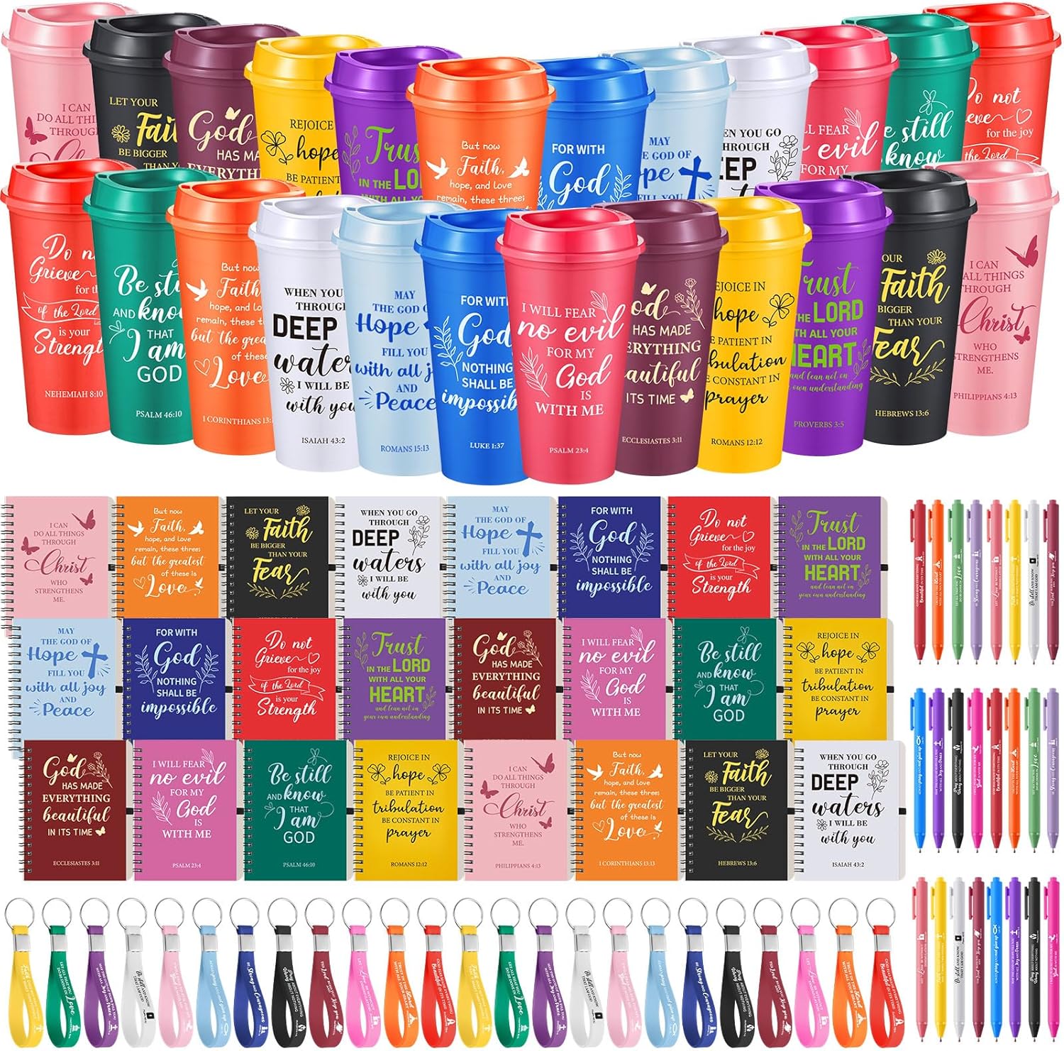 | Included Components | 12x Christian notebooks, 12x Coffee cups, 12x Keychains, 12x Pens |