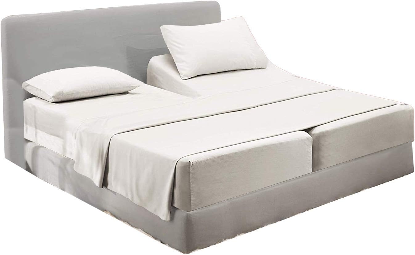 Product Description:5 Pieces Split Sheet Set Includes: 1 Flat Sheet, 2 Fitted Sheet 21" Deep Pocket And 2 Quantity Pillowcases.Pocket Sheets: Deep pocket fitted sheet fit 21 to 24 Inch mattresses. A stretchable elastic all around the entire sheet ensures a tight, secure fit that won’t ride up or move around in middle of the night, staying smooth and snug.High Quality: 100% Cotton offers a sought-after combination of superior strength, luxurious softness, and beautiful sheen. This sheet set made by pure 100% cotton. Sleep better and wake up each morning feeling refreshed and full of energy. Silky soft, most comfortable and luxurious bed sheets you can find.High Thread Count & Material: 800-thread-count Long Staple 100% cotton sheets which uses durable Twisted yarns makes them lightweight, breathable, cool, comfortable and softer hand feel.These split sheet set is Ideal for a master bedroom or notable guest room, new apartment Bedroom, these Hotel Quality Sheet sets are perfect for your overall Bedroom make-over.