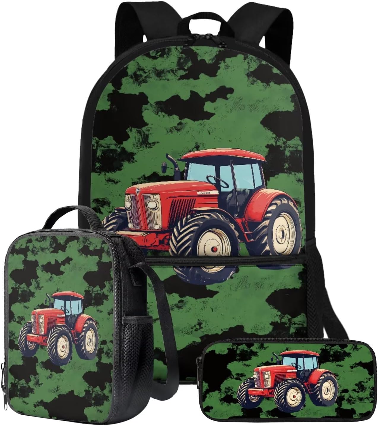 Talayituse Tractor American Flag Pattern School Backpack for Teens Girls Boys, 3-in-1 Kids Backpack Bookbag Set School Bags with Lunch Box Pencil Case