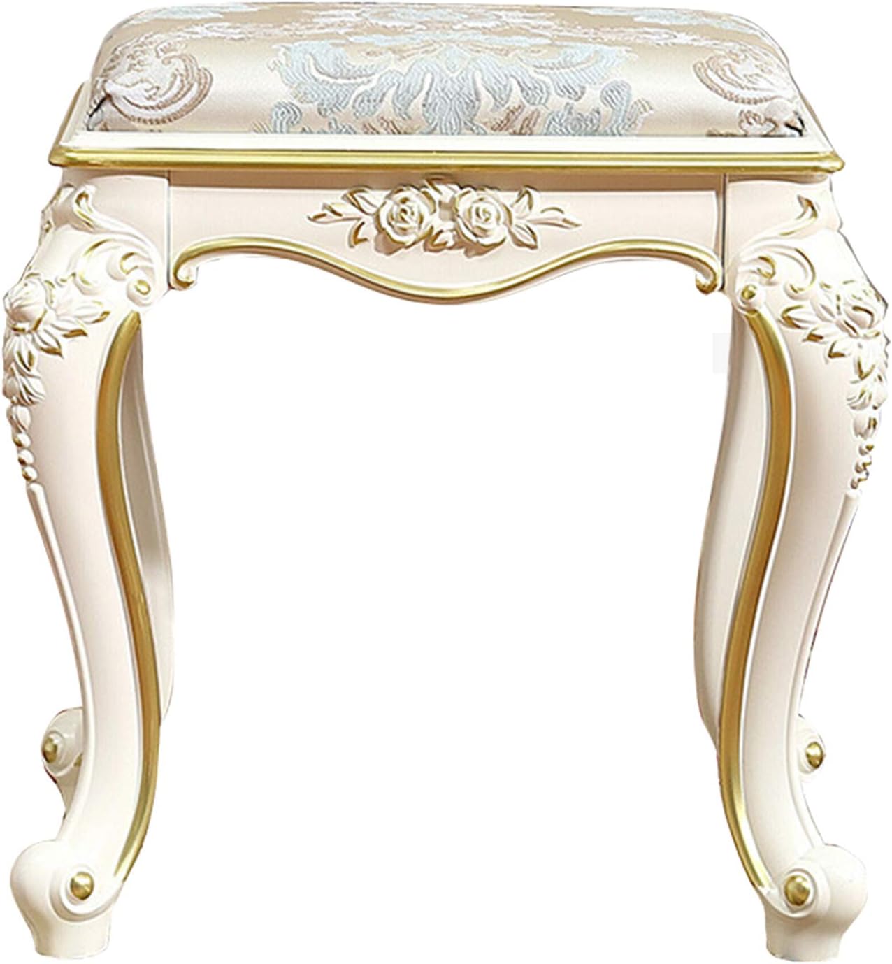 Premium Fabric The premium fabric is breathable and skin-friendly. 5cm thick cushion is filled with high-density sponge, comfortable and not easy to deform Easy to Assemble All you need to do is to attach 4 legs, only taking 5 minutes. ABS legs Constuction ABS construction provides great stability and higher load capacity. Pads on feet protect your floor from scratches and cause no screeches. Name: European dressing stool Style: Baroque Stool leg material: resin Fabric: Cloth/pu leather Colour: Multi-color optional Wood-based panel type: MDF/fiberboard Whether to assemble: assembly Design elements: hand-painted / carved Paint: polyester PU paint Dimensions: width 40xlength30xhigh46cm Includes: 1x vanity stool