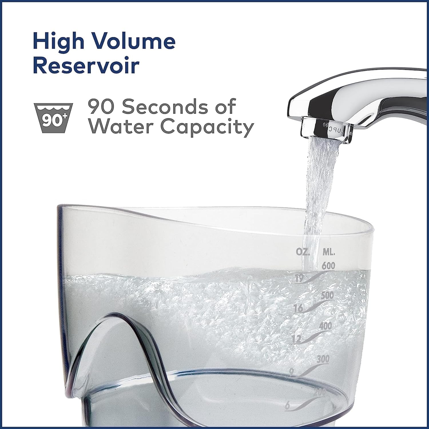 Premium dental water jet with dramatically improved design, large selection of accessories. dentists' choice. clinically proven. covered lid tip storage. 6 tips included: classic jet tip, plaque seeker tip, orthodontic tip, pik pocket tip, toothbrush tip, tongue cleaner.