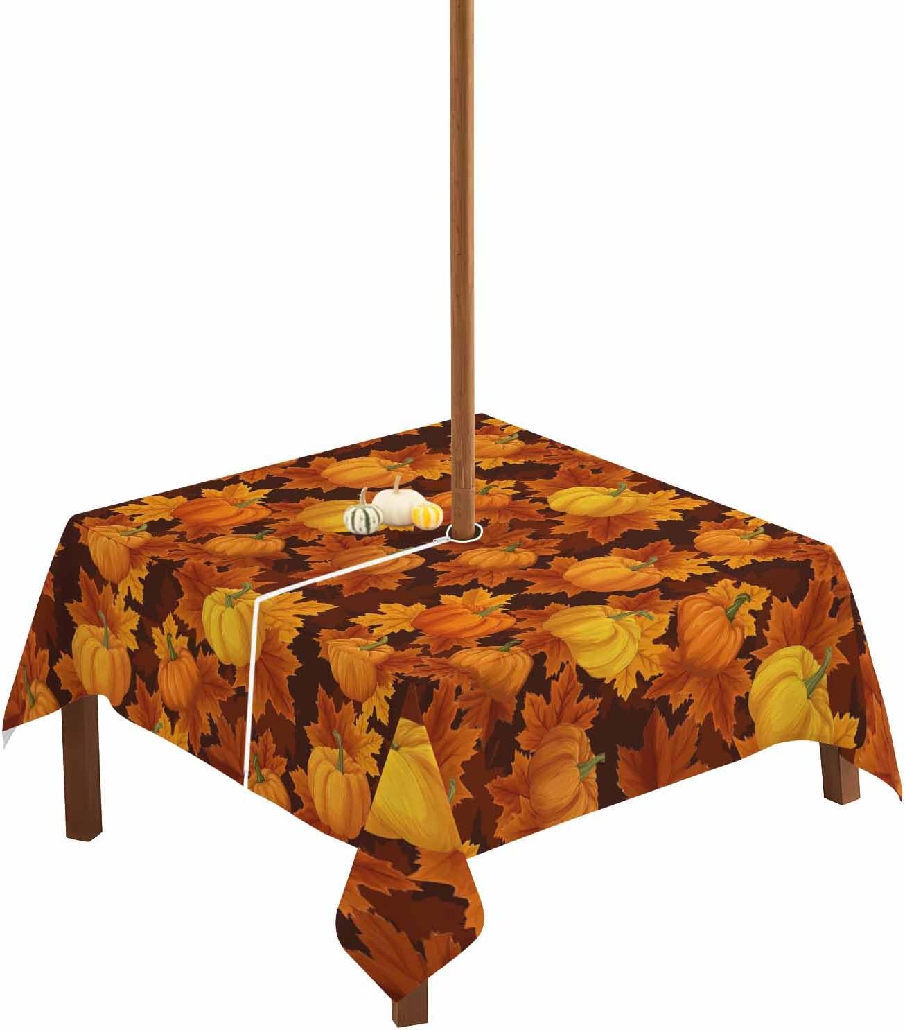 We guess you must looking for an outdoor tablecloth to decorate your patio table.We believe such table cloth can meet your needs.High QualityCrafted from polyester, reusable, waterproof, stain resistant, spill resistant, soft, smooth, skin-friendly, wrinkle free.Umbrella Hole and Smooth Zipper:A hole in the center of table cover and smooth zip fits your beach umbrella stand well.No need to install/ remove your umbrella everytime.Practical Sizes:Round table cloth table cover 54 inches, fits for 4-6 seats.Table cloth round cover 60 inches, fits for 4-6 seats.Square table cloth 54x54 inches, fits for 4-6 seats.Square table cloth 60x60 inches, fits for 4-6 seats.Table cloth rectangle table 52x70 inches, fits for 4-6 seats.Table cloth rectangle table 54x80 inches, fits for 4-6 seats.Table cloth rectangle table 60x84 inches, fits for 6-8 seats.Table cloth rectangle table 60x102 inches, fits for 8-10 seats.Table cloth rectangle table 60x120 inches, fits for 10-12 seats.Please meaure your table size firstly, leave about 12'' each side will drapes well.Gifts & Outdoor Decorations:Vivid printing, various chic patterns for you to choose as an exquisite gift for your friends, family on Valentine's Day, st patrick, easter, Halloween, Thanksgiving,Christmas, housewarming, baby shower, anniversary, engagement, Father's Day, Mother's Day, graduation, independence day, New Year.Various Chic Theme Tablecloth--animal/camouflage/cartoon/checkered/flowers/lanscape/chevron/floral/fruit/geometric/heart/herringbone/rustic oil painting style/leaf/marble/moire/paisley/plaid/polka dot/stripe.Easy Care:Waterproof, stain resistant, oil resistant, spill resistant, so it is easy to care and clean, just wipe any stain with a damp cloth. Machine Washable in a gentle cycle, do not bleach, tumble on low, dry fast.
