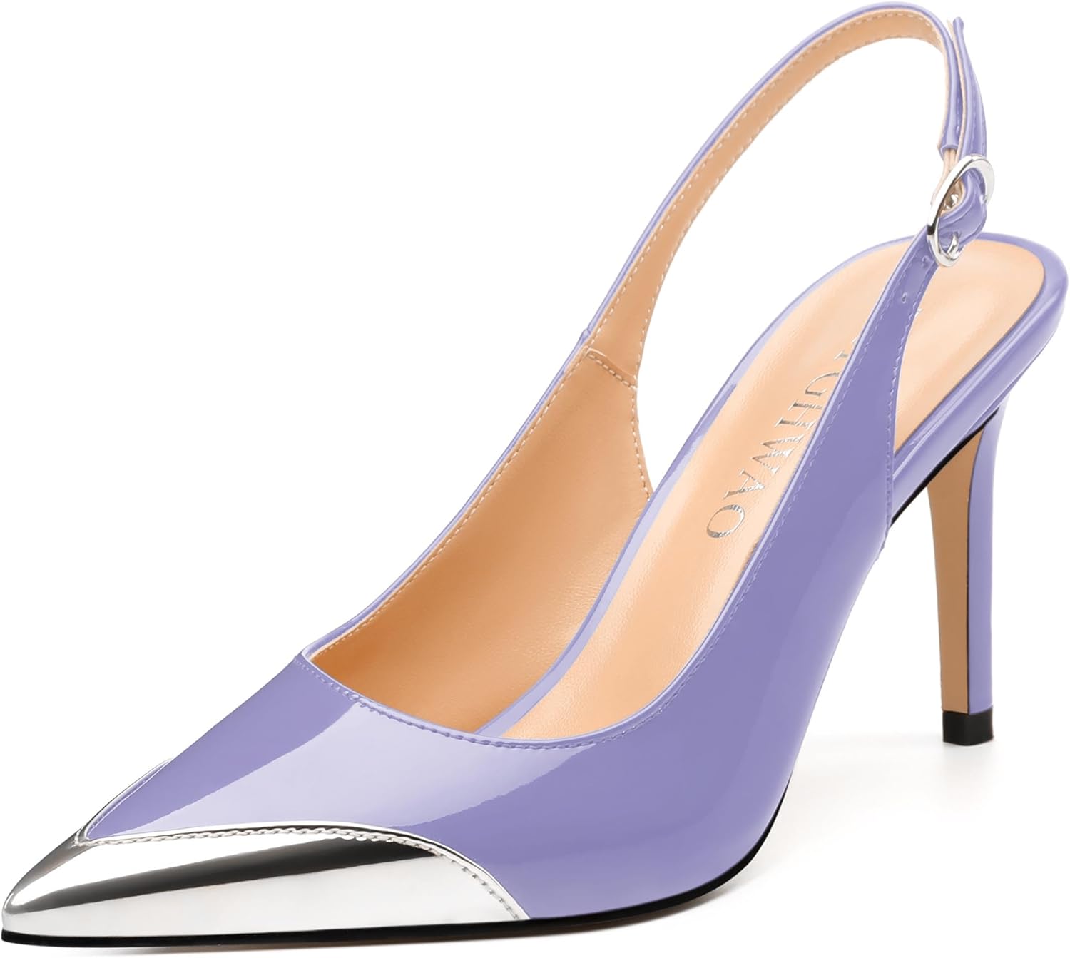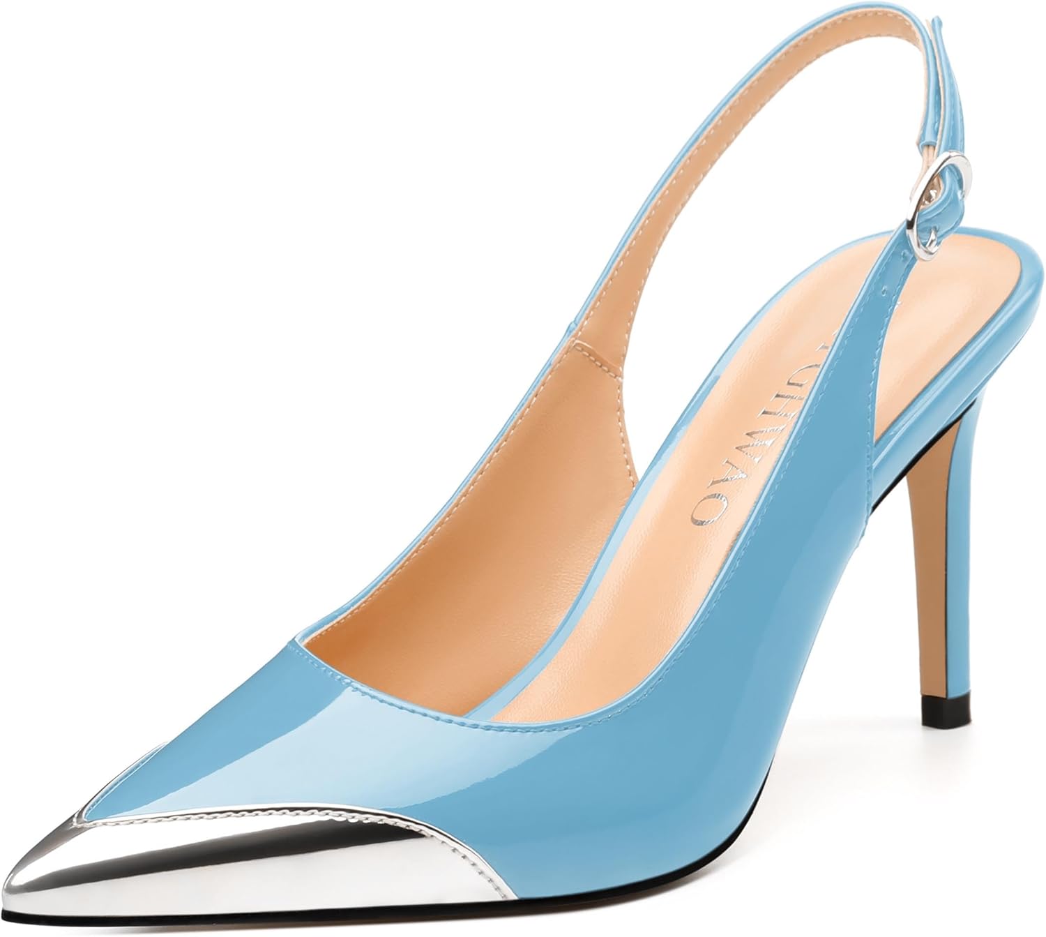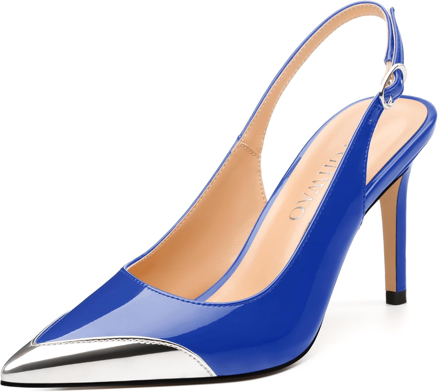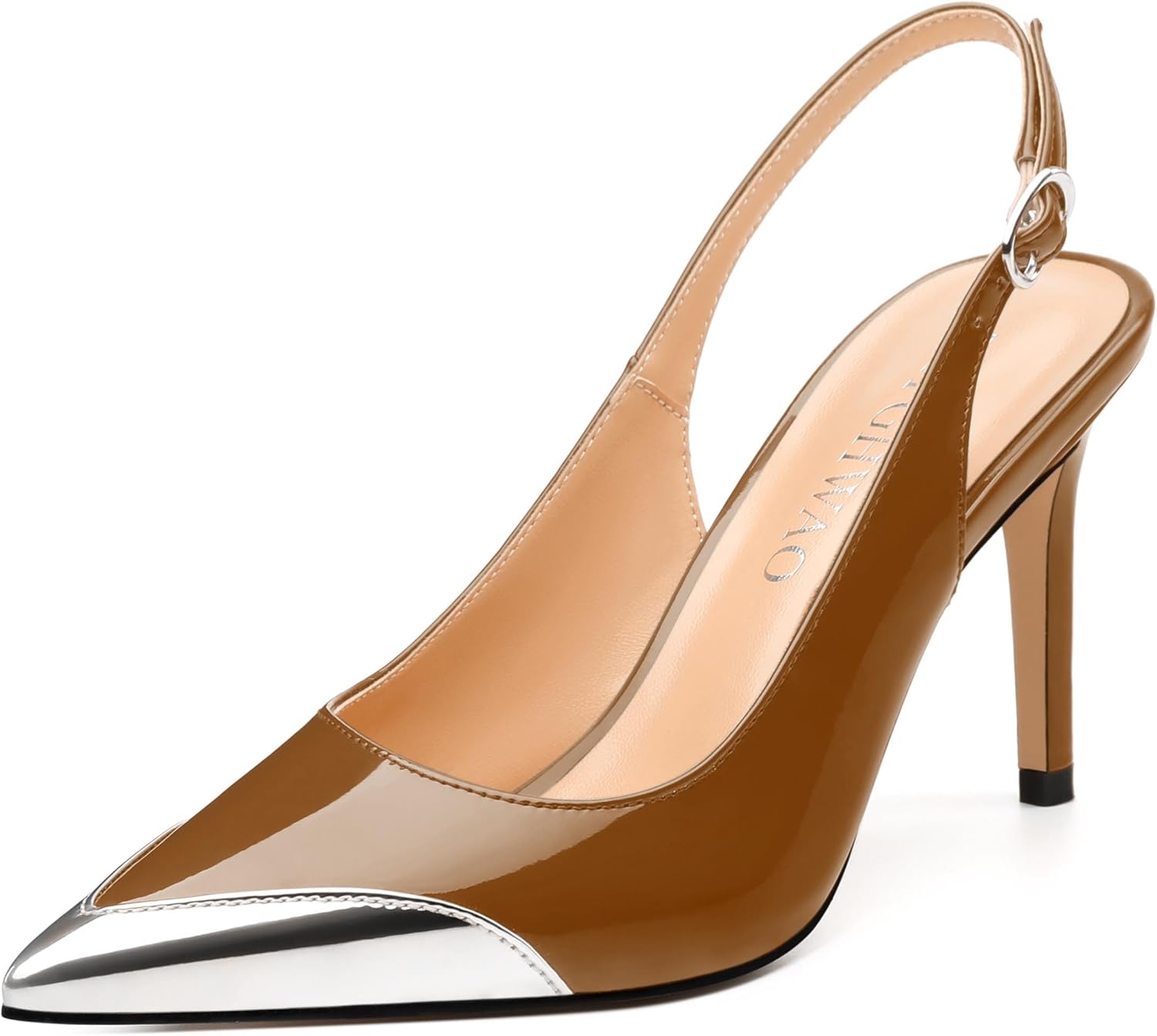 Women's Slingback Pumps, Two Toned Patchwork Pointed Toe High Heels, Slip On Fashion Buckle Daily Working Party Shoes